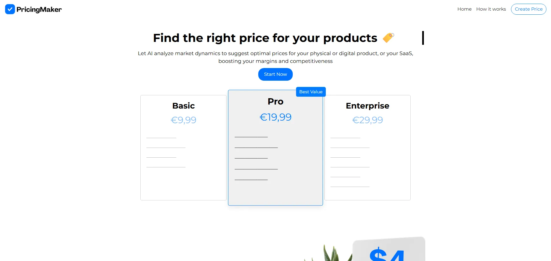 PricingMaker es un generador de precios basado en IA diseñado para productos SaaS, físicos y digitales. Analiza la dinámica del mercado para sugerir estrategias de precios óptimas que mejoran la competitividad y aumentan los márgenes de beneficio. Con recomendaciones de precios instantáneas, permite fijar tarifas alineadas con las expectativas de los clientes y las tendencias actuales, mientras contabiliza comisiones para maximizar las ganancias netas en cada transacción. Ideal para emprendedores individuales que necesitan gestionar eficazmente el desarrollo y las ventas de sus productos con confianza.
