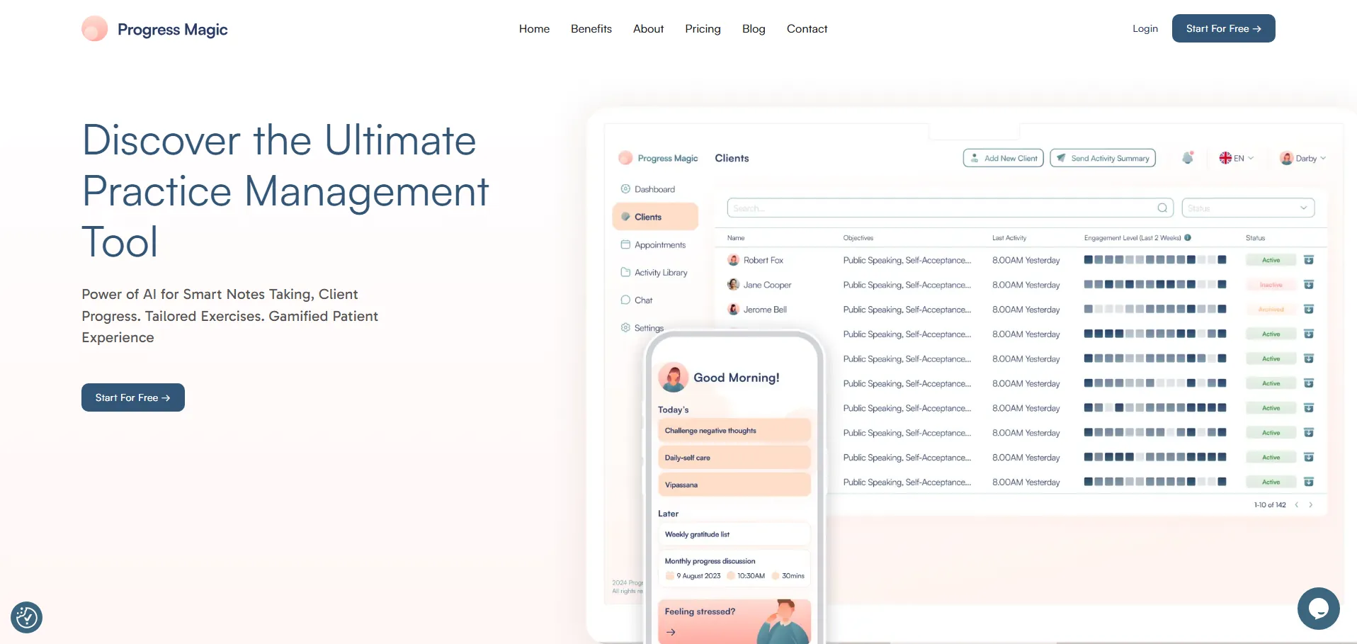 ProgressMagic es una plataforma de gestión de consultorios y despachos diseñada para optimizar procesos en empresas de diversos sectores. Con una interfaz intuitiva y flujos de trabajo totalmente configurables, permite programar citas, centralizar la documentación y garantizar la privacidad de los datos cumpliendo normativas. Gracias a su módulo de análisis en tiempo real, los equipos pueden supervisar indicadores clave, mejorar la atención al cliente y coordinar proyectos de forma colaborativa.