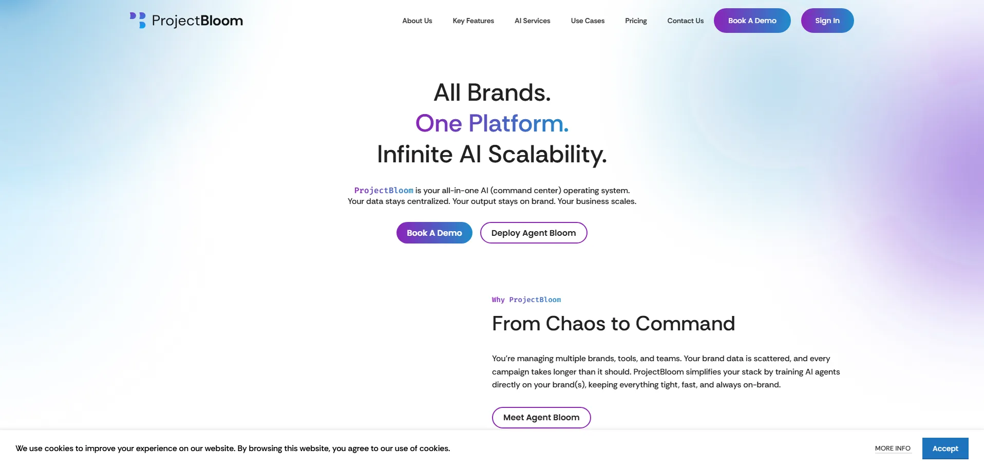 ProjectBloom es una plataforma de inteligencia artificial todo en uno que centraliza los activos de marca y agiliza procesos en marketing, ventas y RR. HH. Su Centro de Comando unifica la gestión de logos, paletas de color y documentos corporativos, garantizando coherencia en todos los canales. Con agentes de IA especializados en tareas como creación de contenido para redes sociales, generación de propuestas comerciales y diseño de iniciativas de team building, y conectores preconfigurados para una integración fluida con CRM, CMS y otras herramientas, ProjectBloom automatiza flujos de trabajo. Además, ofrece análisis avanzados e informes personalizados que facilitan la toma de decisiones basada en datos, y una interfaz conversacional en lenguaje natural que mejora la experiencia de usuario.