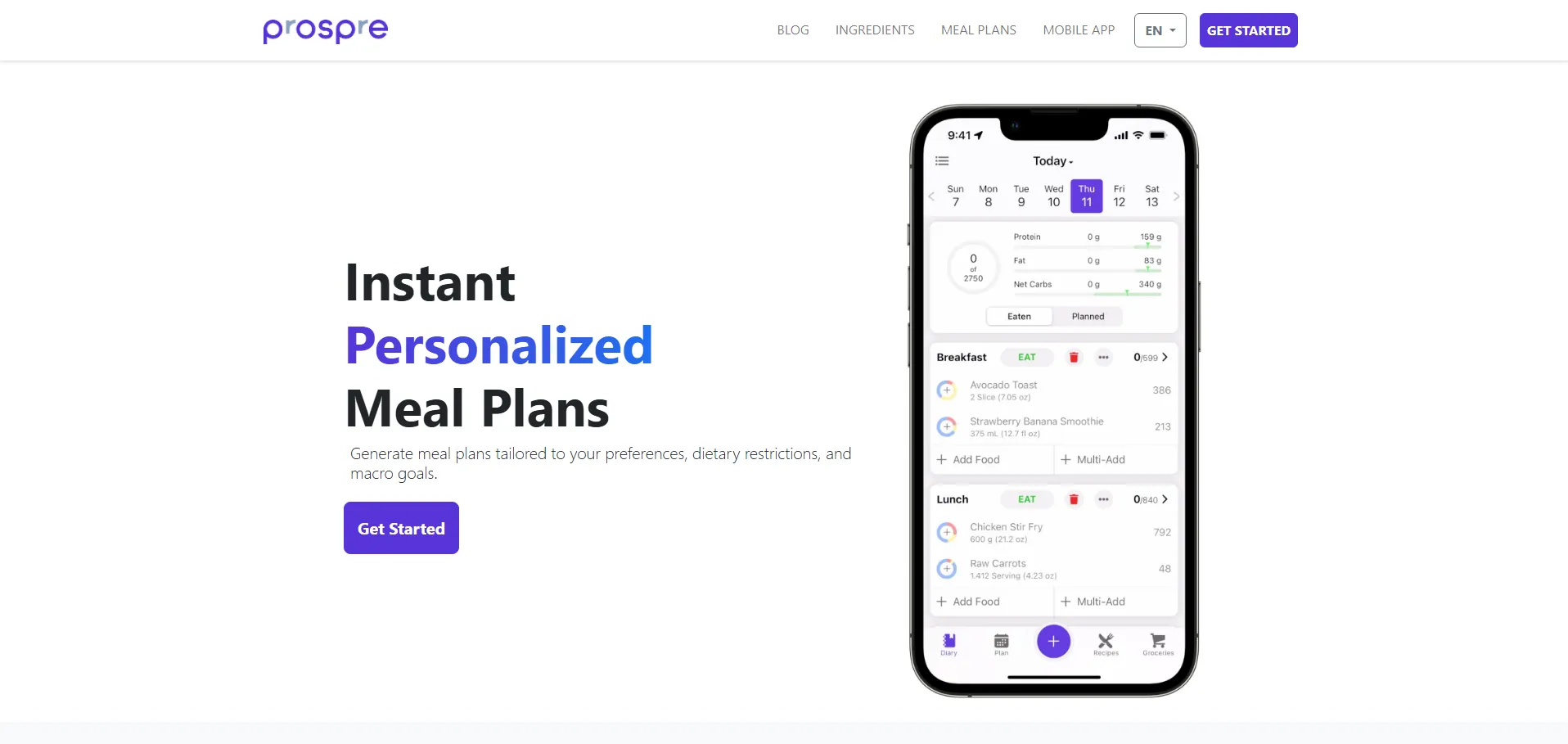 Prospre es una app de planificación de comidas que crea planes de alimentación personalizados en función de tus objetivos de macronutrientes. Incluye un generador de menús, un rastreador de macros y una herramienta automática para listas de la compra. Los usuarios pueden seleccionar recetas, ajustar preferencias y registrar alergias. Además, cuenta con un entrenador de IA que analiza tu ingesta y peso, sugiriendo modificaciones para alcanzar tus metas.