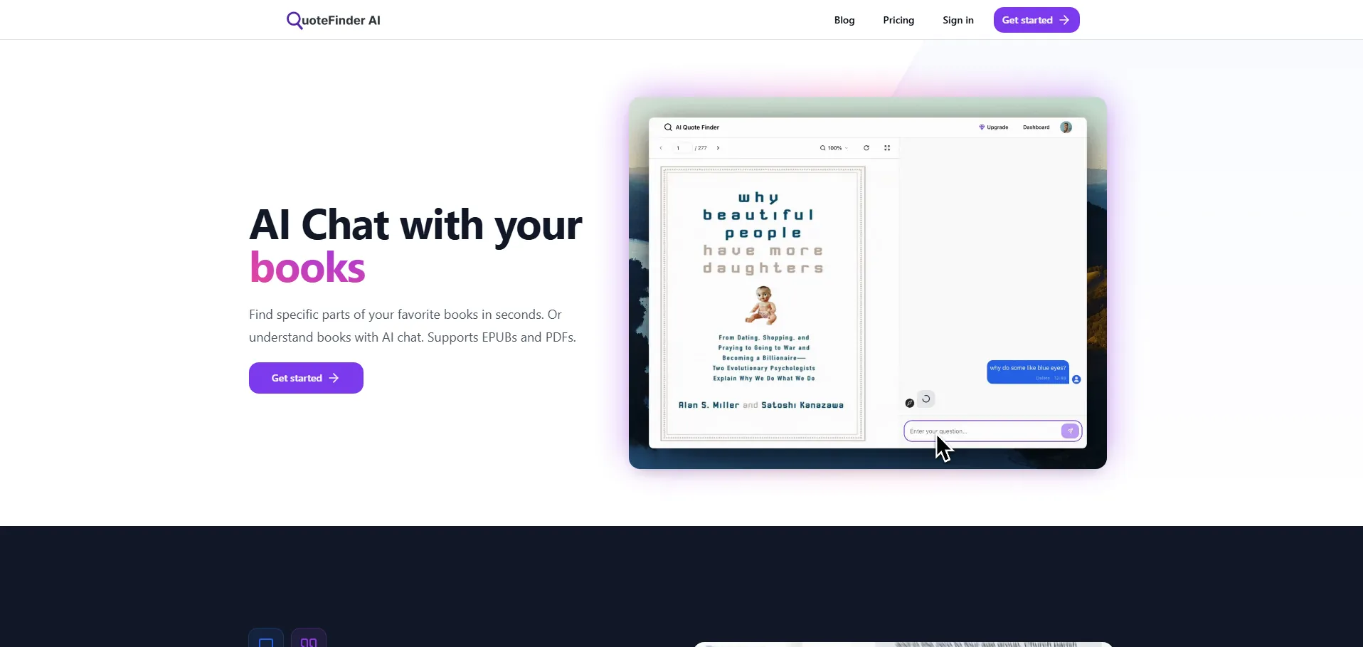 QuoteFinder AI es una herramienta potenciada por inteligencia artificial para localizar pasajes y citas textuales en documentos digitales. Compatible con formatos PDF y EPUB, permite realizar búsquedas precisas en miles de páginas, alternando entre un chat interactivo y un modo de extracción directa. Gracias a sus cargas masivas y a su interfaz intuitiva, ofrece acceso inmediato a fragmentos relevantes, optimizando el flujo de trabajo de escritores, investigadores y estudiantes que requieren referencias fiables al instante.