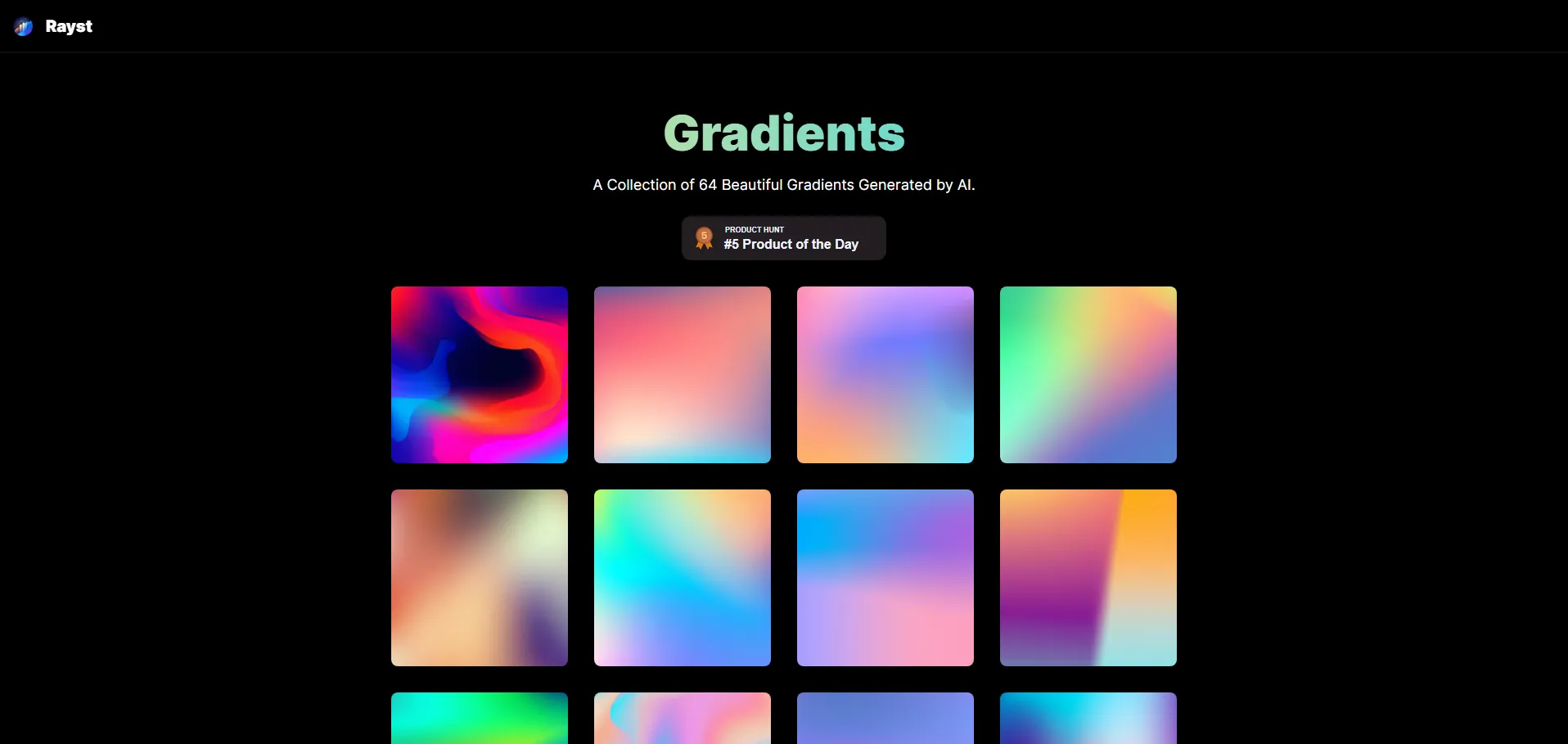 Rayst Gradients es una plataforma online que ofrece una selecta colección de 64 degradados generados por Inteligencia Artificial. Cada degradado se extrae de una base de datos de más de 200 000 combinaciones, organizadas por color, tono, saturación y luminosidad. Además, cuenta con una herramienta de personalización que permite ajustar parámetros y crear degradados únicos, convirtiéndose en un recurso imprescindible para diseñadores, desarrolladores y creativos que buscan inspiración y soluciones visuales impactantes.