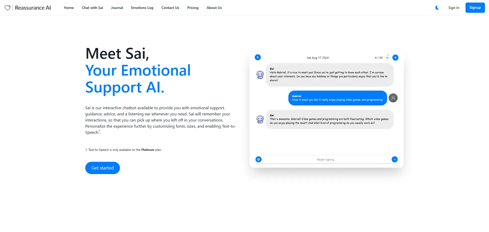 Reassurance es una herramienta impulsada por inteligencia artificial que ofrece un espacio seguro para el apoyo emocional y la autorreflexión. Su asistente virtual, Sai, actúa como un compañero empático que escucha, orienta y acompaña a los usuarios en momentos de estrés, ansiedad o reflexión personal.