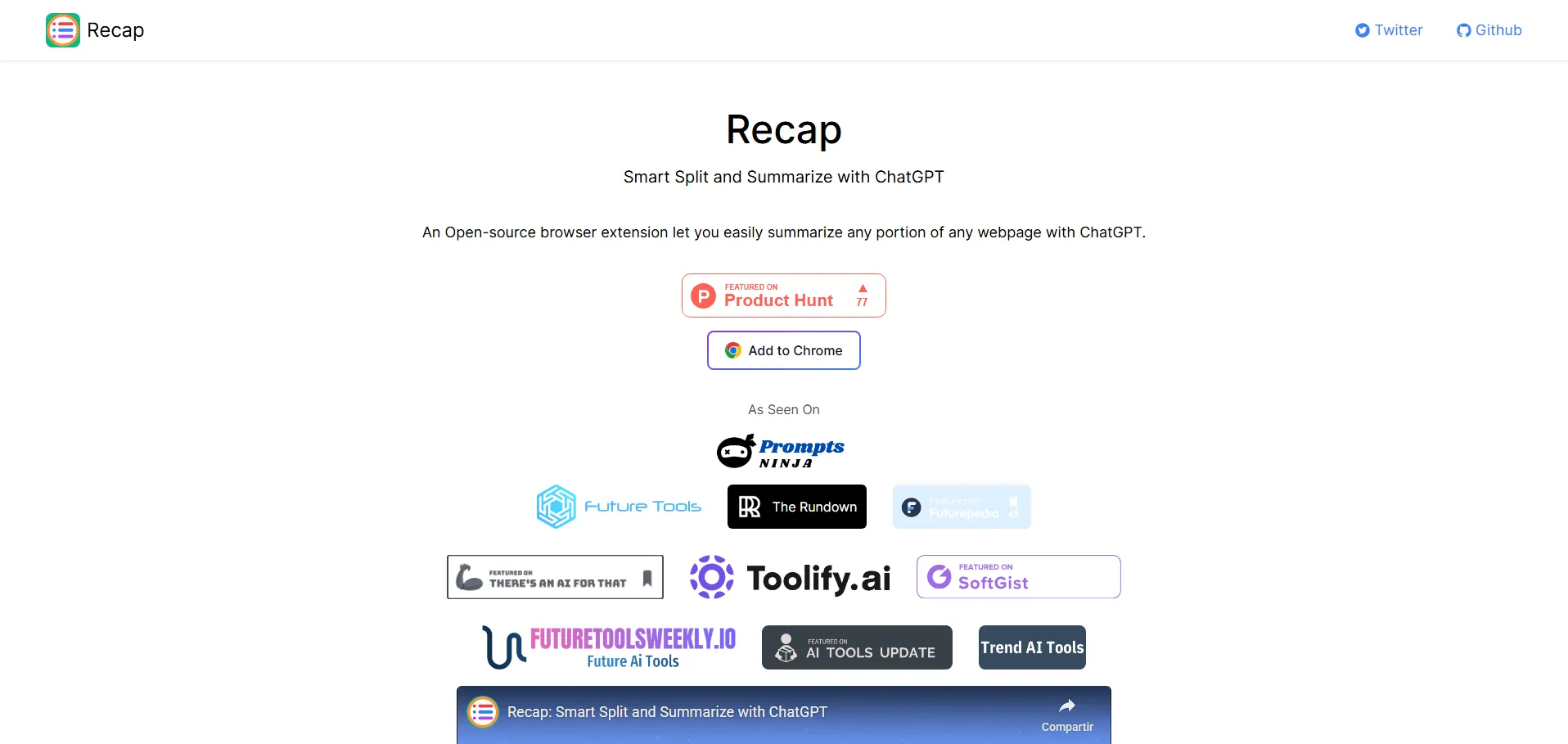 Recapext es una extensión de navegador de código abierto que aprovecha el modelo ChatGPT para generar resúmenes rápidos y precisos de cualquier página web. Con integración directa en Chrome y otros navegadores compatibles, permite convertir artículos, entradas de blog o documentos extensos en resúmenes claros sin necesidad de iniciar sesión en ChatGPT. Ofrece opciones avanzadas de personalización de modelos, configuración de la API de OpenAI y accesos directos para maximizar la productividad de investigadores, estudiantes y profesionales del contenido.