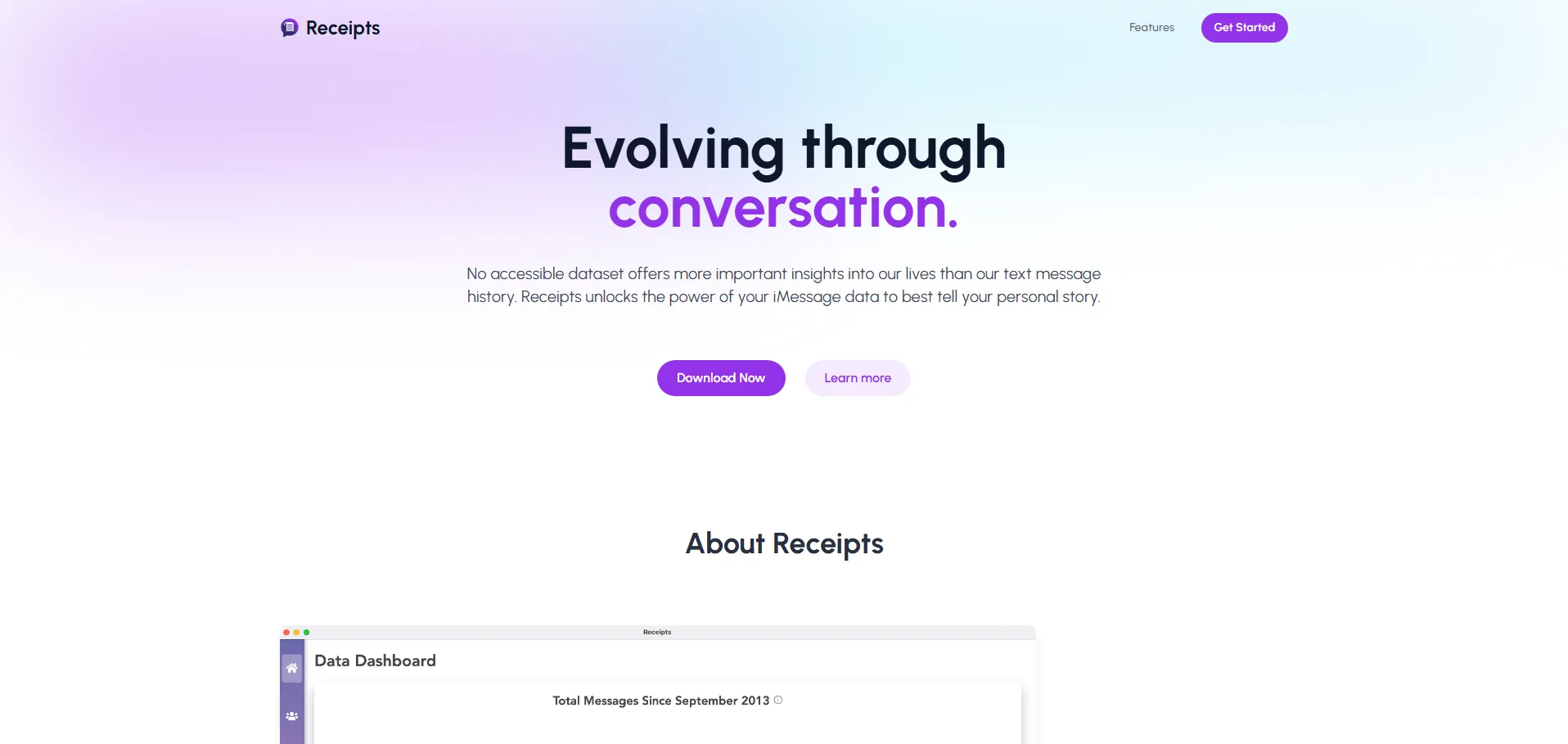 Receipts es una herramienta de inteligencia artificial diseñada para analizar y visualizar el historial de conversaciones de iMessage.