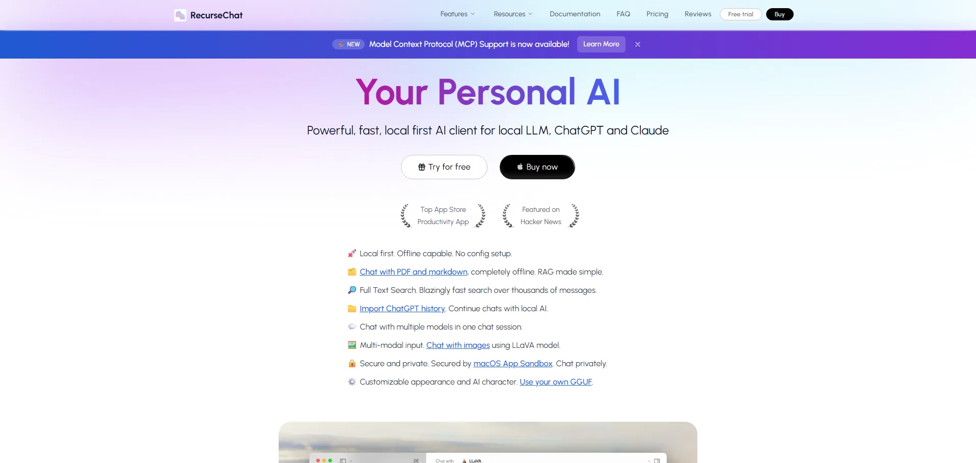 Disponible para macOS y iOS. Consulta la documentación oficial y accede al centro de soporte en la web de RecurseChat.