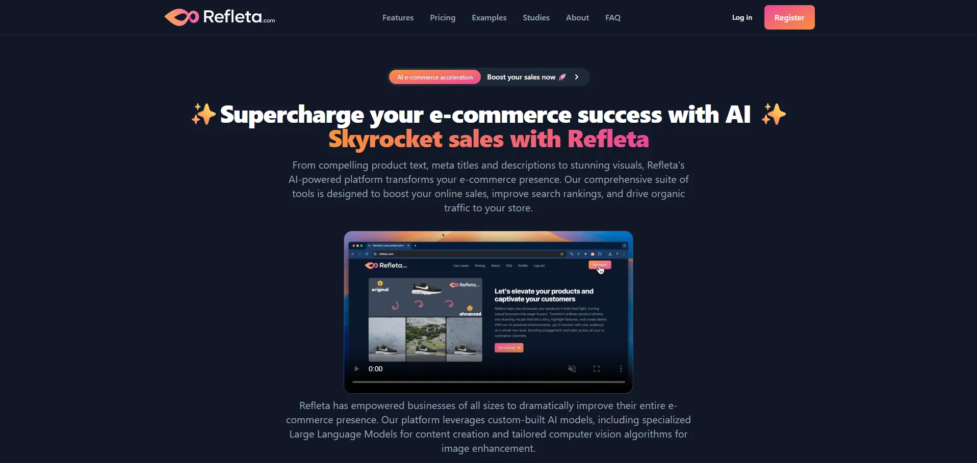 Refleta es una plataforma de aceleración de comercio electrónico impulsada por inteligencia artificial, diseñada para potenciar las ventas online mediante la mejora avanzada de imágenes de producto. Con algoritmos de visión artificial, transforma fotografías comunes en activos visuales atractivos, optimizando el engagement y generando tráfico orgánico. Su sistema en la nube se integra de forma segura con Shopify, WooCommerce y Magento, y además crea descripciones de producto únicas y optimizadas para SEO, mejorando la visibilidad en buscadores y aumentando las tasas de conversión. Ideal para empresas que buscan escalar su presencia digital con soluciones de IA y optimización visual.