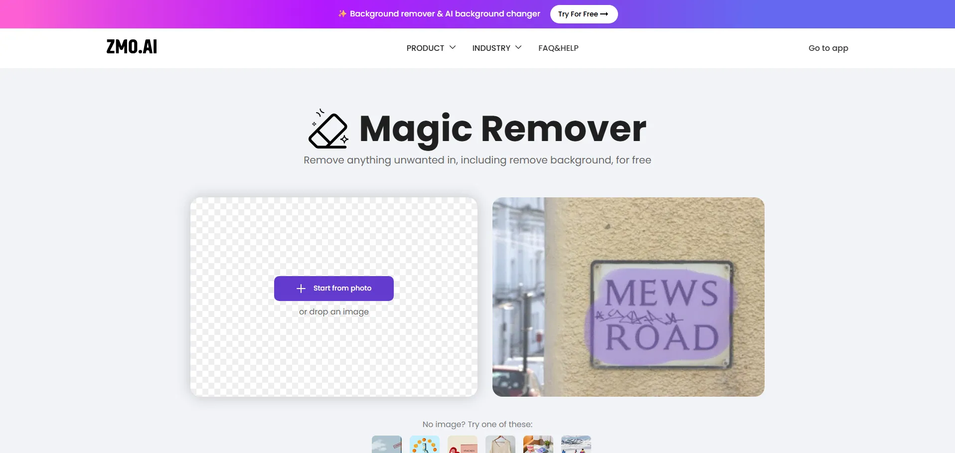 Remover ZMO AI es una herramienta de edición de imágenes impulsada por inteligencia artificial que permite eliminar objetos no deseados, personas o marcas de agua de forma rápida y profesional con un solo clic. Ofrece un servicio ilimitado y gratuito, ideal para mejorar la calidad visual de cualquier fotografía sin necesidad de conocimientos técnicos.