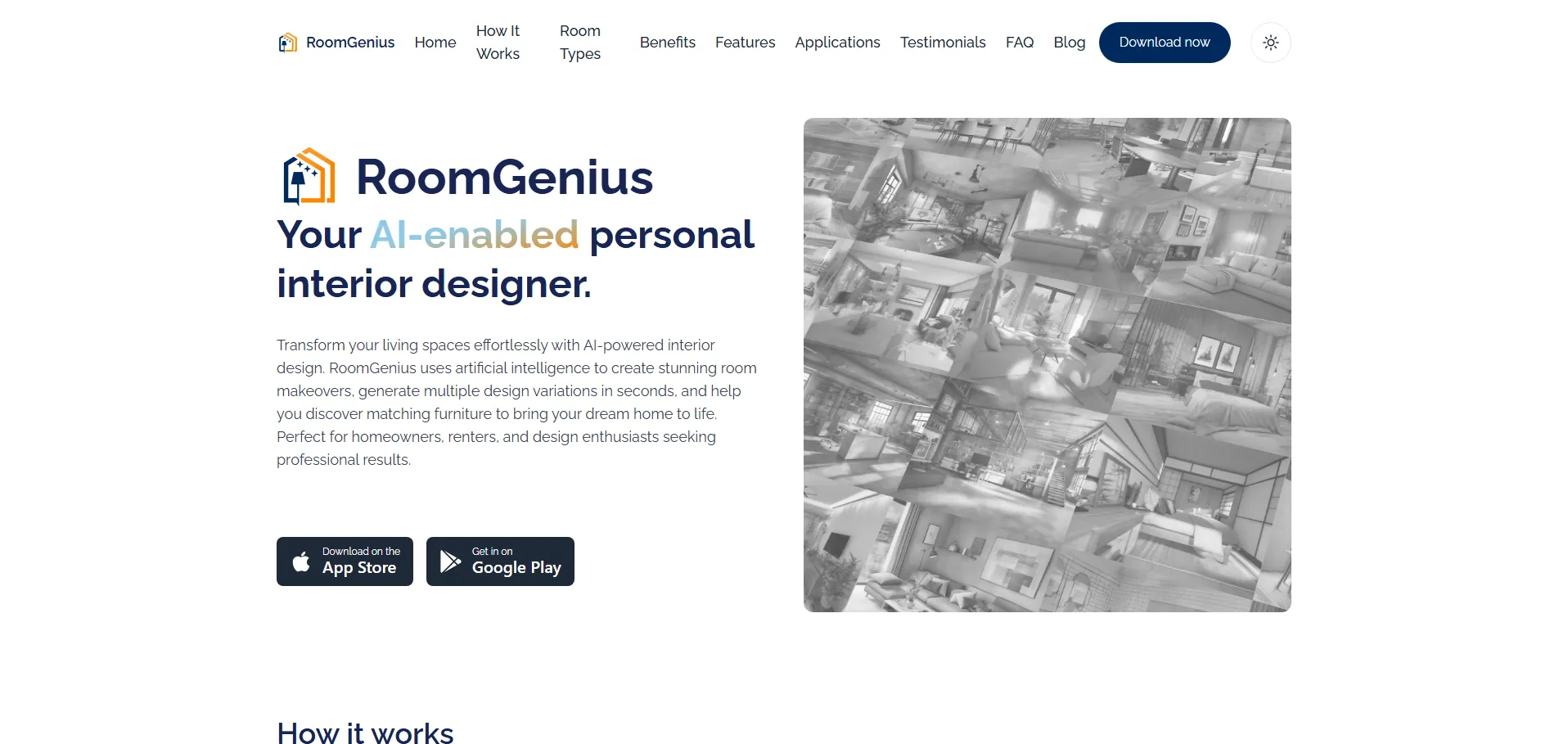 RoomGenius es un asistente de diseño de interiores potenciado por inteligencia artificial que revoluciona la forma de decorar tus espacios. Gracias a sus sofisticados algoritmos de IA, genera variantes de diseño en segundos a partir de una foto o un boceto de tu habitación. Ofrece temas de estilo, paletas de color y recomendaciones de mobiliario para salones, cocinas, dormitorios y más, facilitando un proceso de decoración rápido, accesible y personalizado.