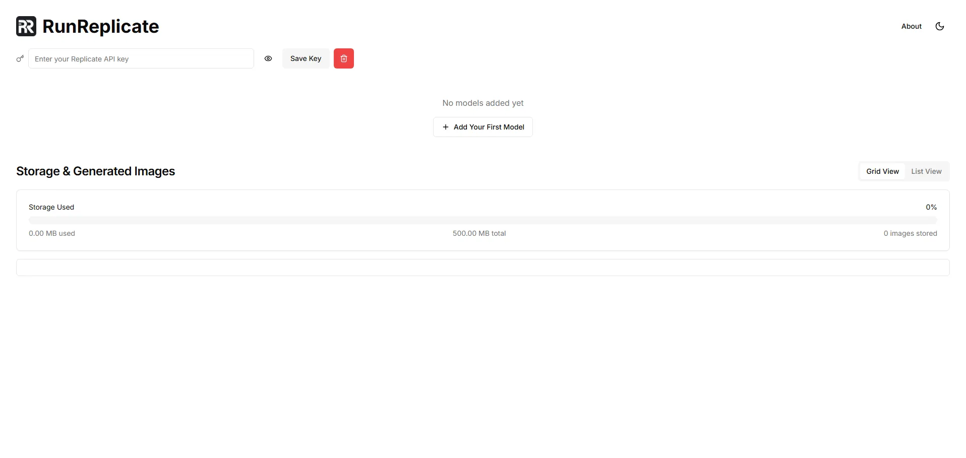 Con una interfaz intuitiva, RunReplicate facilita la alternancia de temas y la gestión de la biblioteca de imágenes, permitiendo a usuarios de todos los niveles visualizar sus creaciones en cuadrícula o lista y personalizar cada proyecto mediante la adición de nuevos modelos de IA.