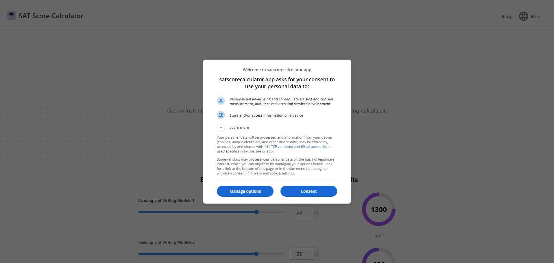 La Calculadora de Puntaje del SAT es una herramienta en línea diseñada para que estudiantes evalúen de forma rápida y precisa su rendimiento en pruebas de práctica del SAT. Al ingresar las respuestas correctas de cada sección—lectura, escritura y matemáticas—genera una puntuación escalada que refleja el posible resultado en el examen oficial. Gracias a su interfaz intuitiva y a su algoritmo de conversión basado en los criterios del College Board, permite optimizar las estrategias de estudio y focalizar el tiempo en las áreas que más lo requieren.