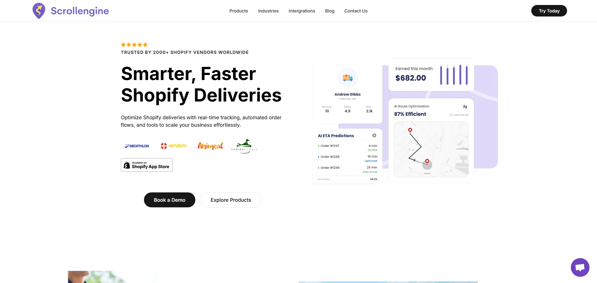 Scrollengine es una plataforma logística potenciada por inteligencia artificial, creada para comercios electrónicos que buscan optimizar entregas locales y recogidas en tienda. Ofrece seguimiento en tiempo real de conductores, enrutamiento automático con IA y notificaciones instantáneas al cliente. Gracias a su integración con Shopify y otras soluciones de e-commerce, facilita la asignación de pedidos, reduce tiempos de entrega y mejora la experiencia de compra sin aumentar la carga operativa.