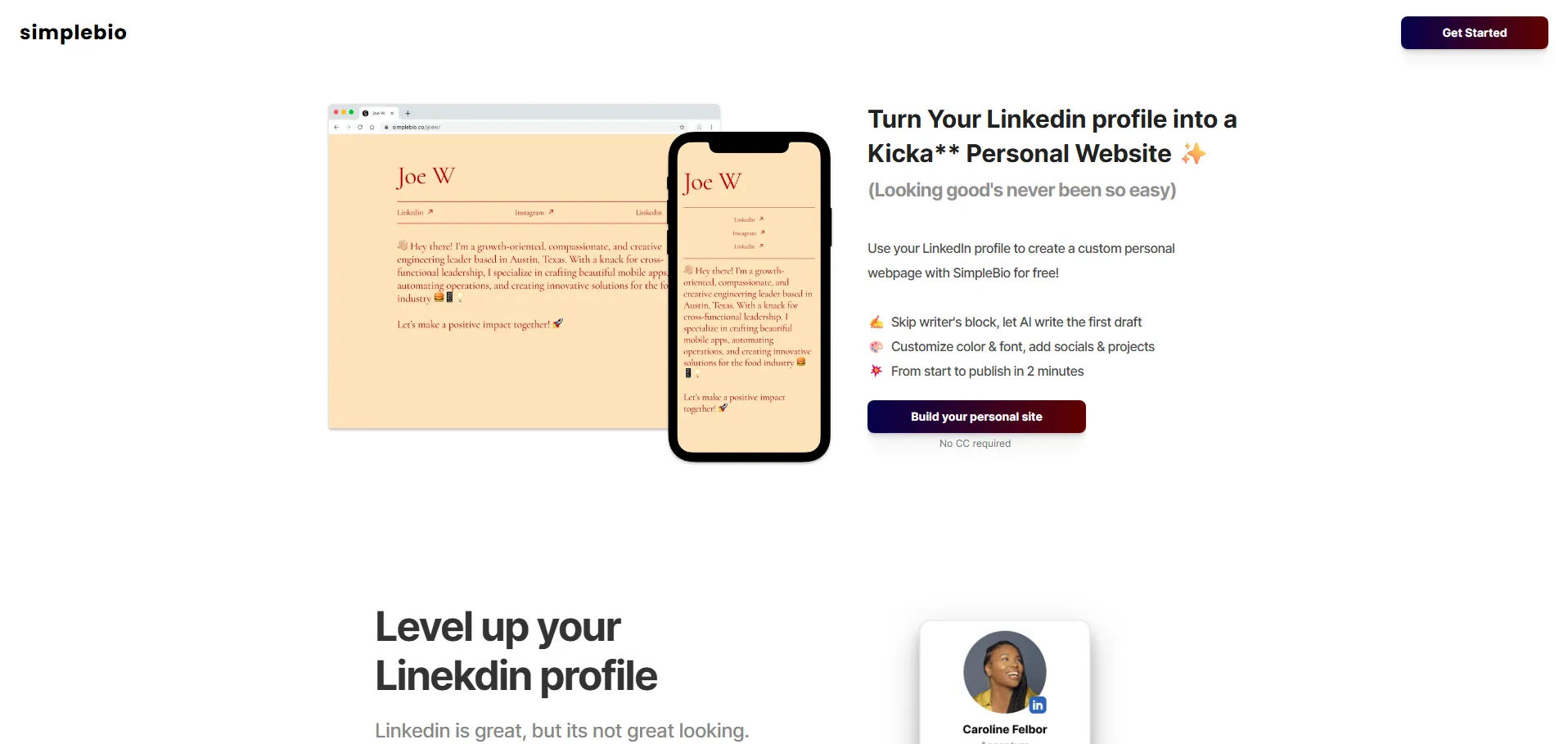 SimpleBio es una herramienta de inteligencia artificial diseñada para convertir tu perfil de LinkedIn en un sitio web personal profesional de forma automática. En solo minutos, genera una página web moderna y responsive, personalízala con colores y tipografías que reflejen tu marca y exhibe tus proyectos y redes sociales en un solo lugar. Olvídate del bloqueo creativo y mejora tu presencia digital sin programación.