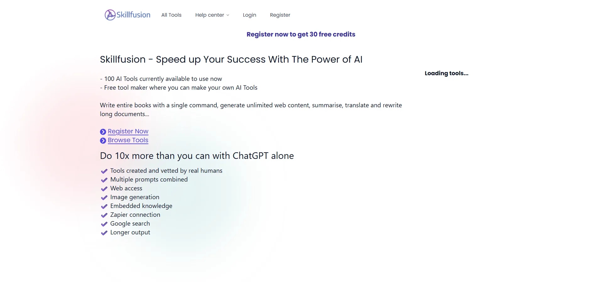 Skillfusion AI es una plataforma de inteligencia artificial que reúne más de 100 herramientas gratuitas y de pago para potenciar la productividad y la creatividad. Permite generar contenido web ilimitado, crear aplicaciones, escribir libros completos con un solo comando, resumir, traducir y reescribir documentos extensos. Gracias a su acceso web, combinación de múltiples indicaciones, generación de imágenes, integración con la búsqueda de Google y conexión a Zapier, Skillfusion AI optimiza flujos de trabajo y automatiza tareas complejas sin necesidad de conocimientos de programación.