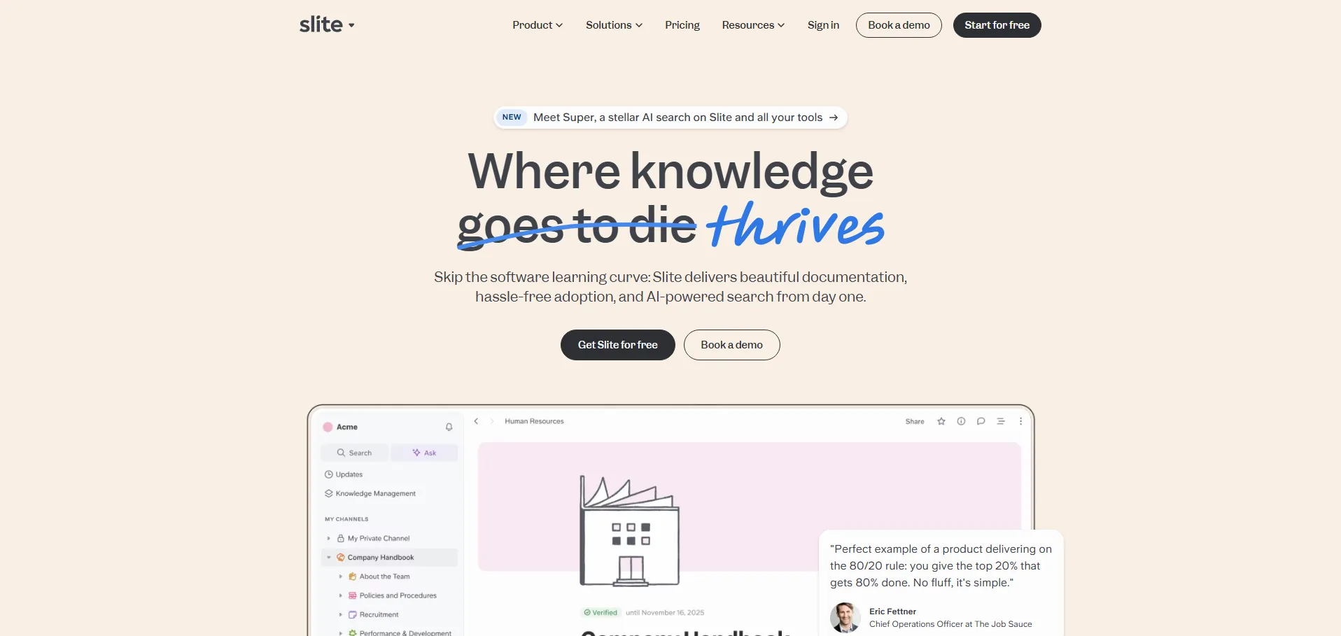 Slite es una plataforma de base de conocimiento potenciada por IA diseñada para centralizar y gestionar la documentación de equipos. Permite crear guías de incorporación, notas de reuniones y manuales internos con respuestas instantáneas y fiables, recomendaciones personalizadas y organización escalable. Con integraciones directas con Slack, Zapier y otras herramientas, Slite simplifica el acceso a la información y mantiene la documentación siempre actualizada en un único espacio colaborativo.