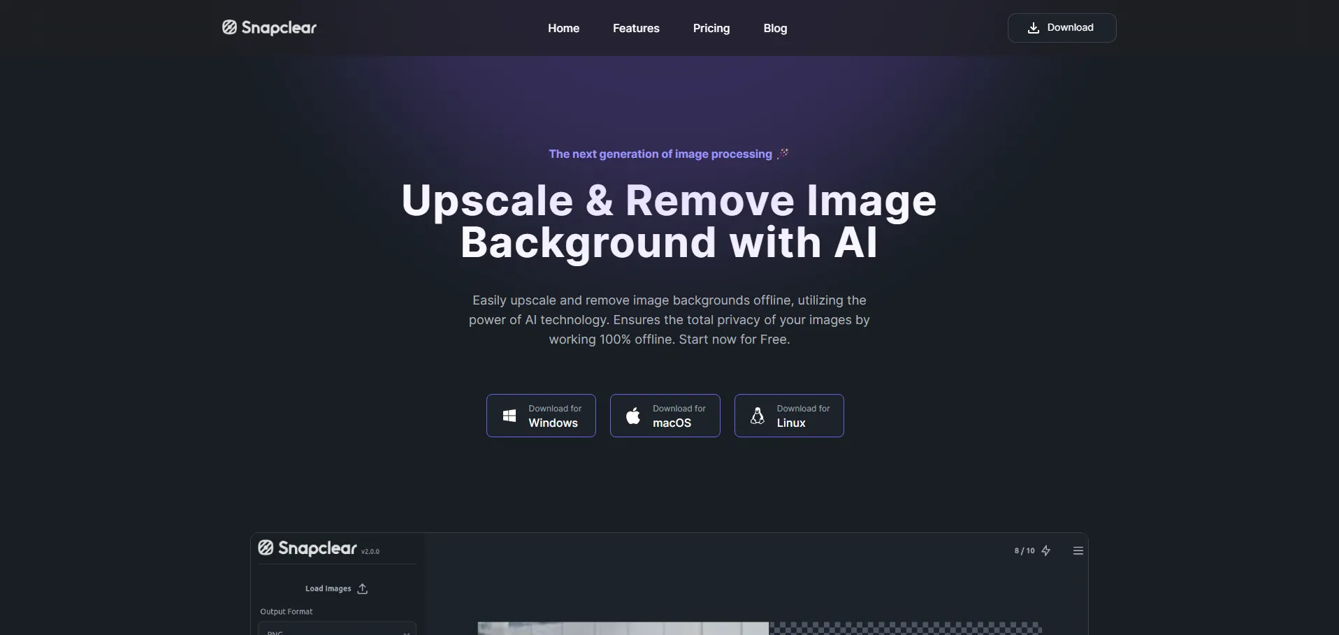 Snapclear es una herramienta de procesamiento de imágenes sin conexión que aprovecha tecnología de IA de vanguardia para ampliar fotografías hasta 4× su resolución original y eliminar fondos con gran precisión. Su modelo de inteligencia artificial, entrenado para reconocer personas, animales y objetos complejos, garantiza recortes limpios y mejora de nitidez sin comprometer la privacidad: todo el procesamiento se realiza localmente en tu dispositivo. Con algoritmos optimizados, Snapclear combina escalado de alta calidad, reducción de ruido y recorte automático para ofrecer resultados profesionales en proyectos de diseño gráfico, comercio electrónico y marketing digital.