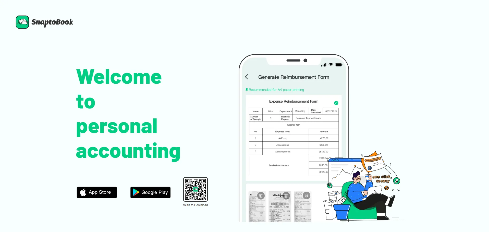 Snaptobook es un software de contabilidad personal que simplifica la gestión de facturas y recibos para particulares, autónomos y empresas. Gracias a su reconocimiento avanzado de recibos basado en IA, captura y organiza automáticamente todos los documentos fiscales, genera formularios de reembolso al instante y garantiza un almacenamiento seguro en la nube. Además, permite dividir gastos con precisión y aplicar etiquetas automáticas para ofrecer un control total sobre tus finanzas.