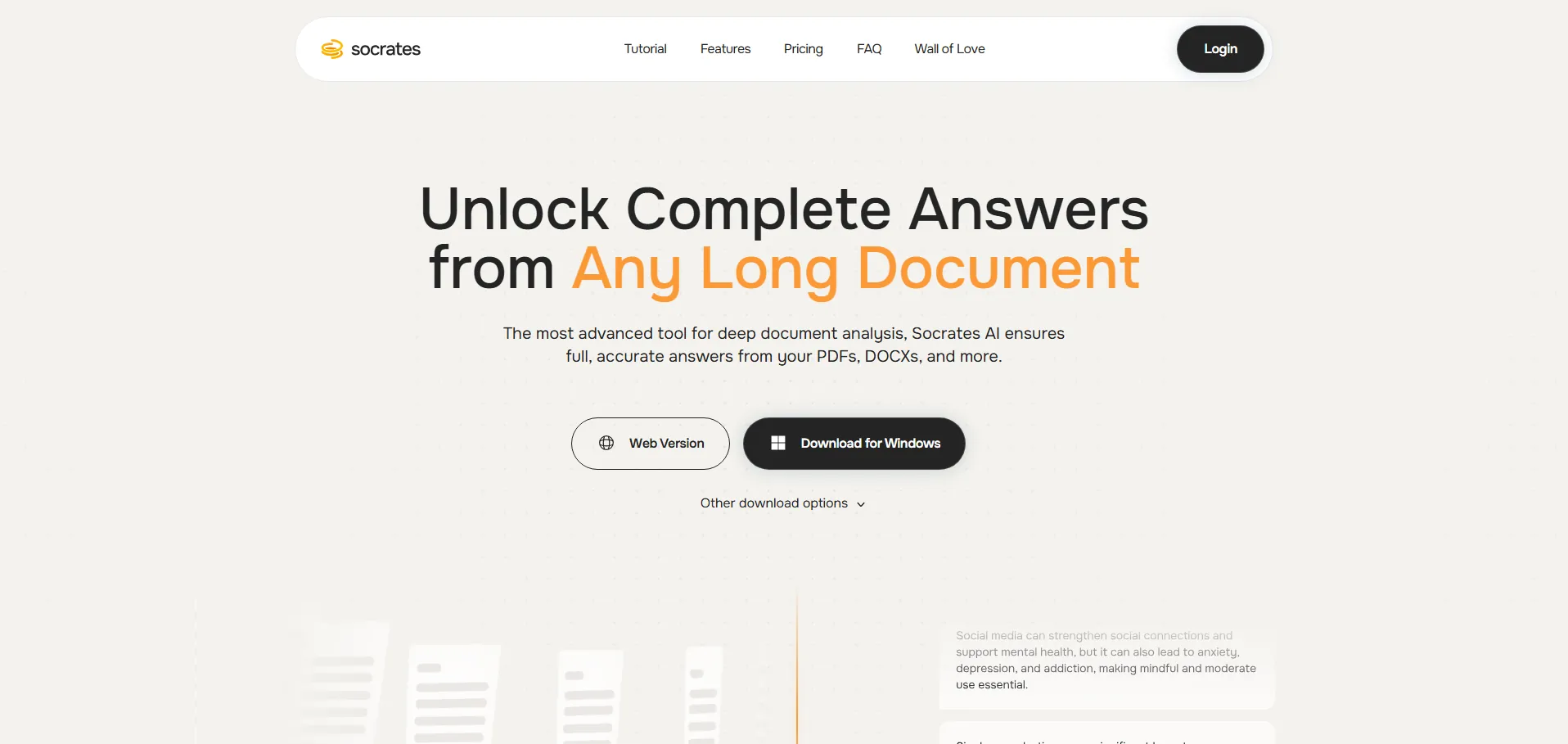 Sócrates es una aplicación de inteligencia artificial que permite extraer y analizar información de documentos en formatos PDF y DOCX de manera rápida y segura. Con compatibilidad para Windows, Mac (Intel y M1+) y acceso web, facilita la consulta de libros, informes académicos y artículos. Incorpora modelos de IA de última generación como Llama 3.1 para procesamiento local sin conexión y ofrece almacenamiento cifrado en la nube hasta que decidas compartir tus archivos.