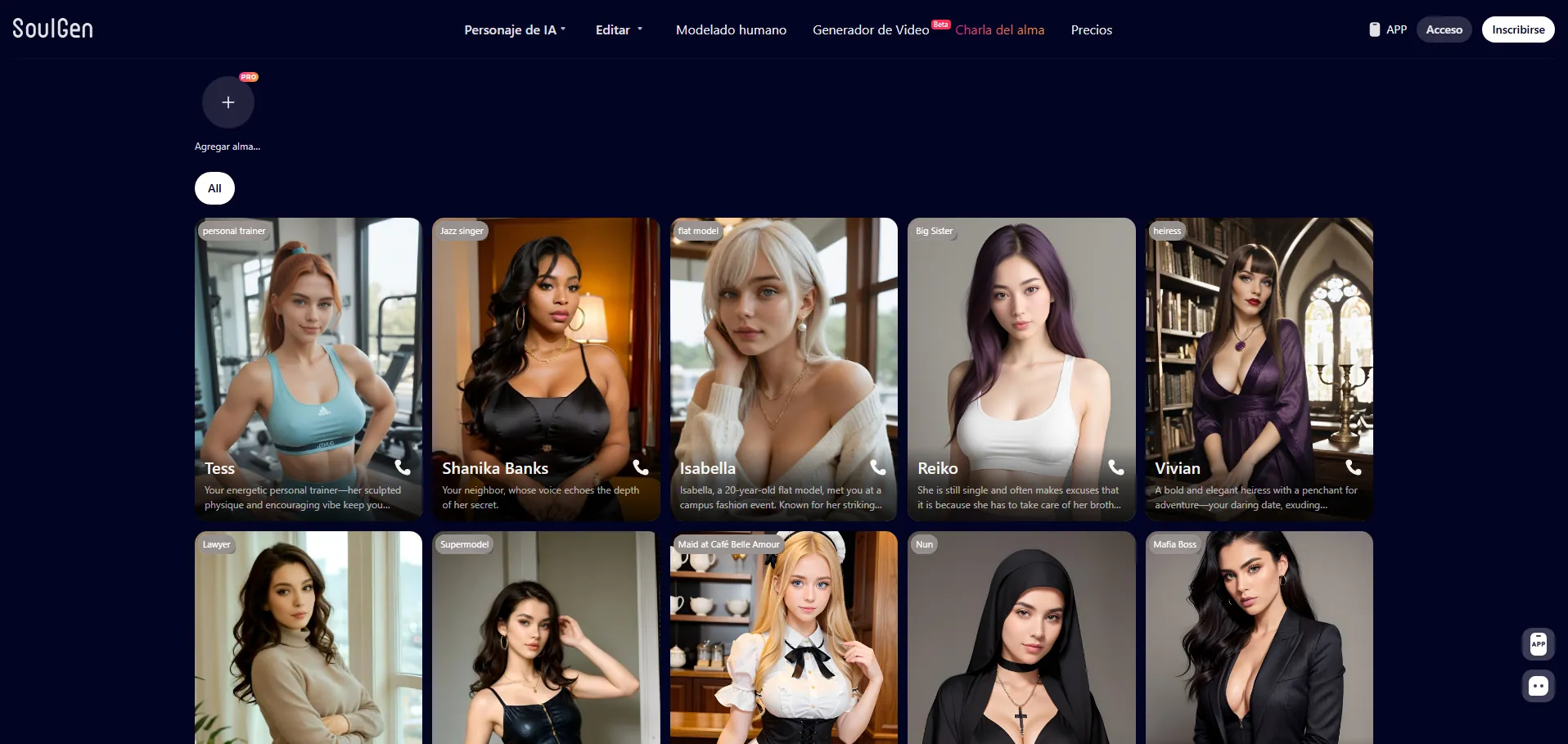 Soulgen Chat es una plataforma de generación y chat de personajes de anime impulsada por IA. Permite crear avatares realistas y únicos, interactuar con ellos sin filtros y personalizarlos añadiendo “almas gemelas” para establecer vínculos emocionales. Su interfaz intuitiva facilita la conexión con una comunidad virtual de aficionados al anime, donde compartir creaciones, experiencias y pasiones.