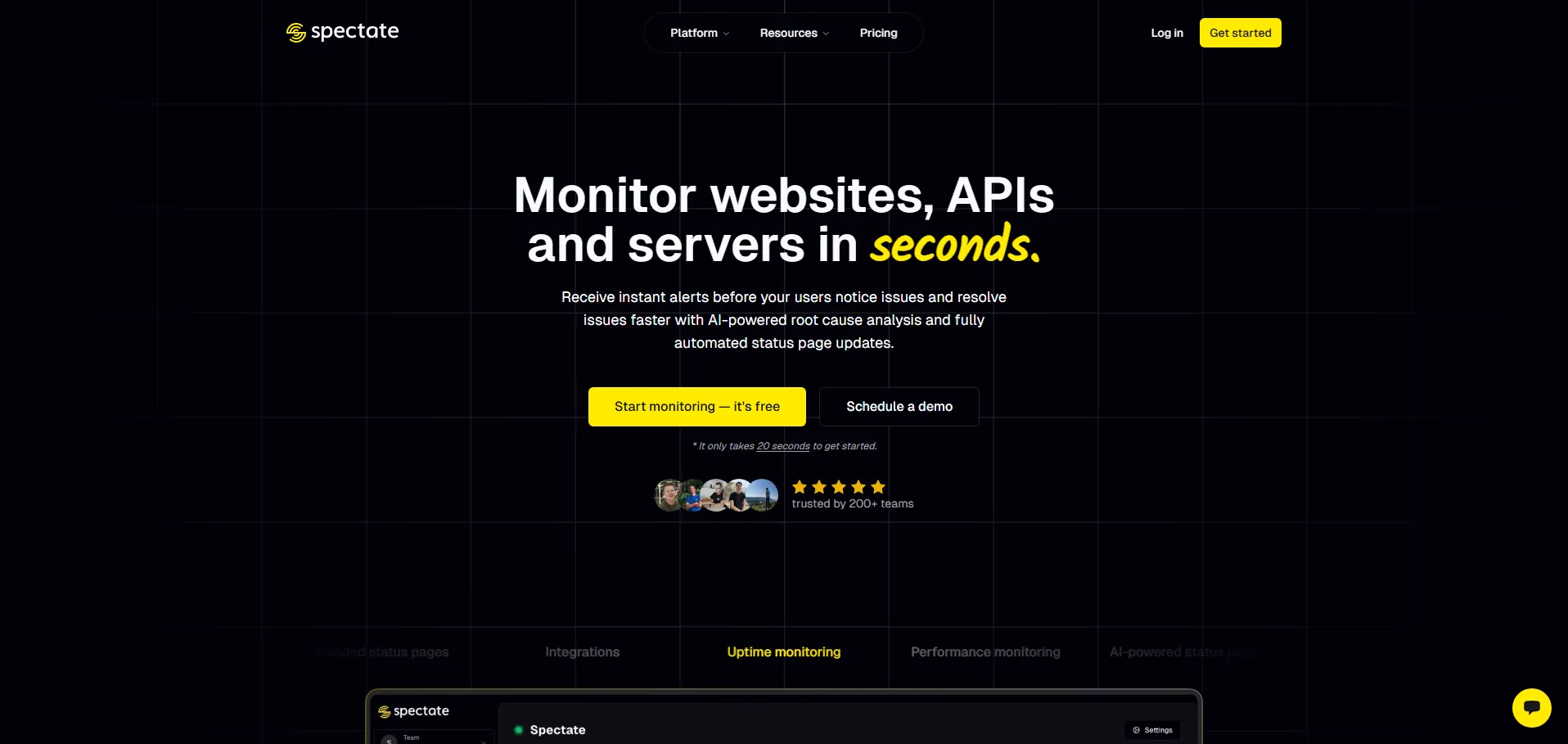 Spectate es una plataforma integral de monitorización y gestión de incidentes que permite vigilar API, sitios web y servidores con alertas en tiempo real. Gracias a su análisis de causa raíz basado en IA y sus páginas de estado automatizadas y personalizables, las empresas pueden mantener la continuidad operativa y la transparencia ante sus usuarios. Con políticas de alerta configurables y notificaciones multicanal (Slack, email, llamadas), Spectate optimiza la monitorización de sistemas críticos y reduce el tiempo de inactividad.