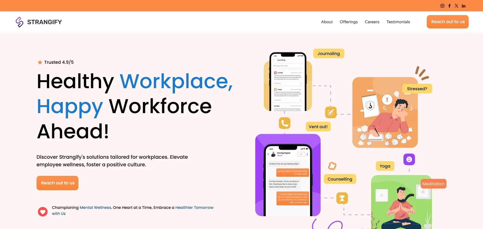 Strangify es una plataforma de inteligencia artificial orientada al bienestar mental en el entorno laboral. Ofrece intervención en crisis en tiempo real, sesiones de asesoramiento con profesionales certificados y una comunidad anónima de oyentes y consejeros colegiados. Además, integra recursos de mindfulness como yoga y meditación para brindar un espacio seguro donde compartir inquietudes, fomentar la resiliencia emocional y cultivar una cultura organizacional positiva.