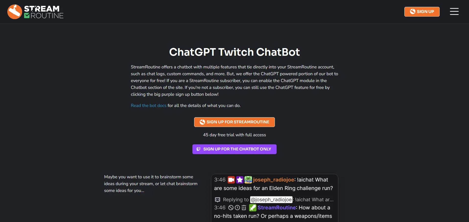 Stream Routine es una plataforma impulsada por IA que ofrece un chatbot especializado para streamers, diseñado para maximizar la interacción y eficiencia en Twitch y otras redes. Mediante la integración con ChatGPT, permite gestionar el chat, crear comandos a medida y generar ideas en tiempo real para enriquecer tu contenido. Además, refuerza la comunidad de creadores con un servidor activo en Discord y soporta TikTok, Instagram, YouTube y Facebook.