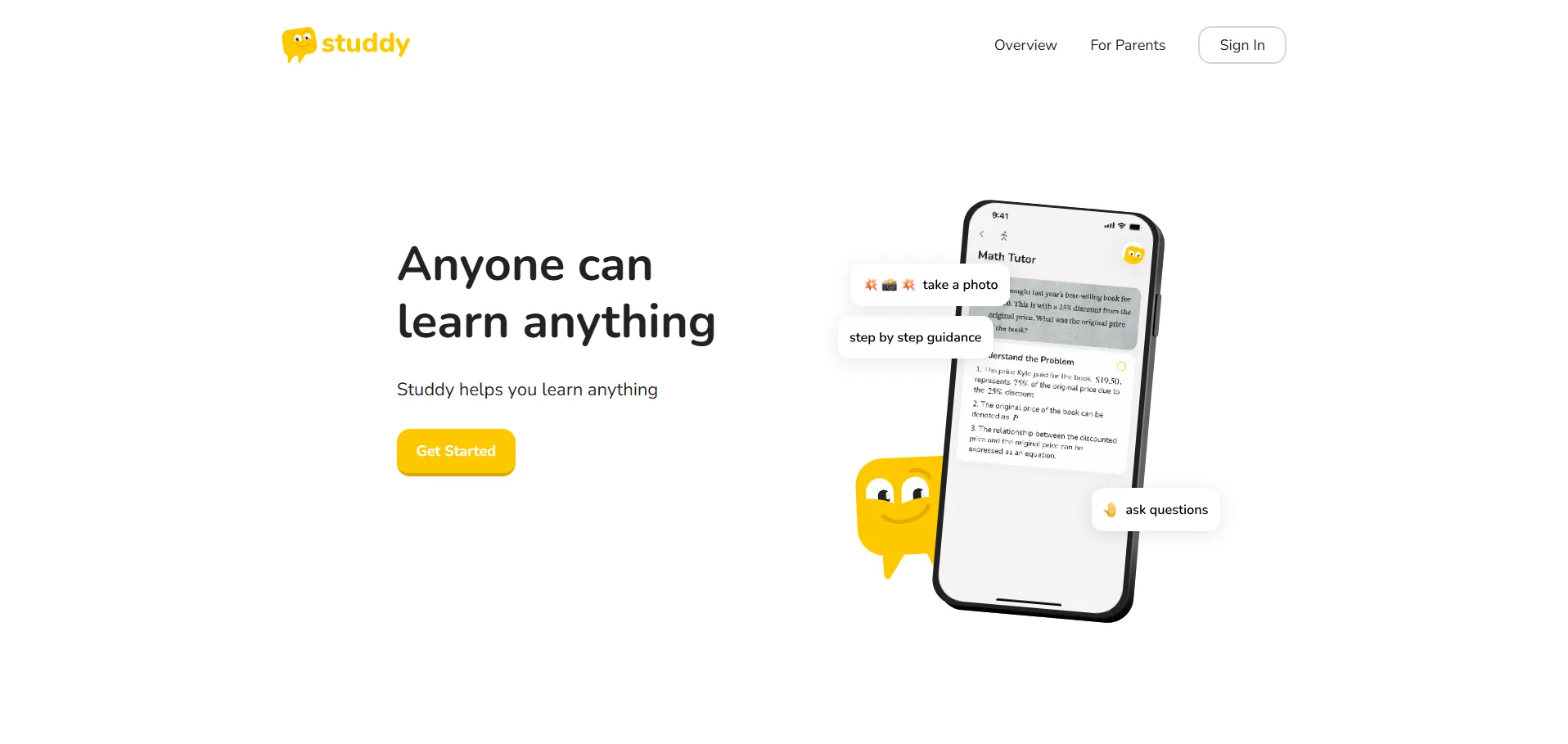 Studdy AI Tutor Pocket es una aplicación de tutoría con inteligencia artificial diseñada para resolver problemas matemáticos y científicos paso a paso. Gracias a sus funciones Snap, Ask y Conquer, ofrece explicaciones claras y personalizadas, adaptándose al nivel de cada usuario, desde primaria hasta universidad. Con sesiones de práctica específicas en álgebra, geometría, cálculo y física, Studdy potencia el aprendizaje autónomo y acelera la comprensión de conceptos complejos.