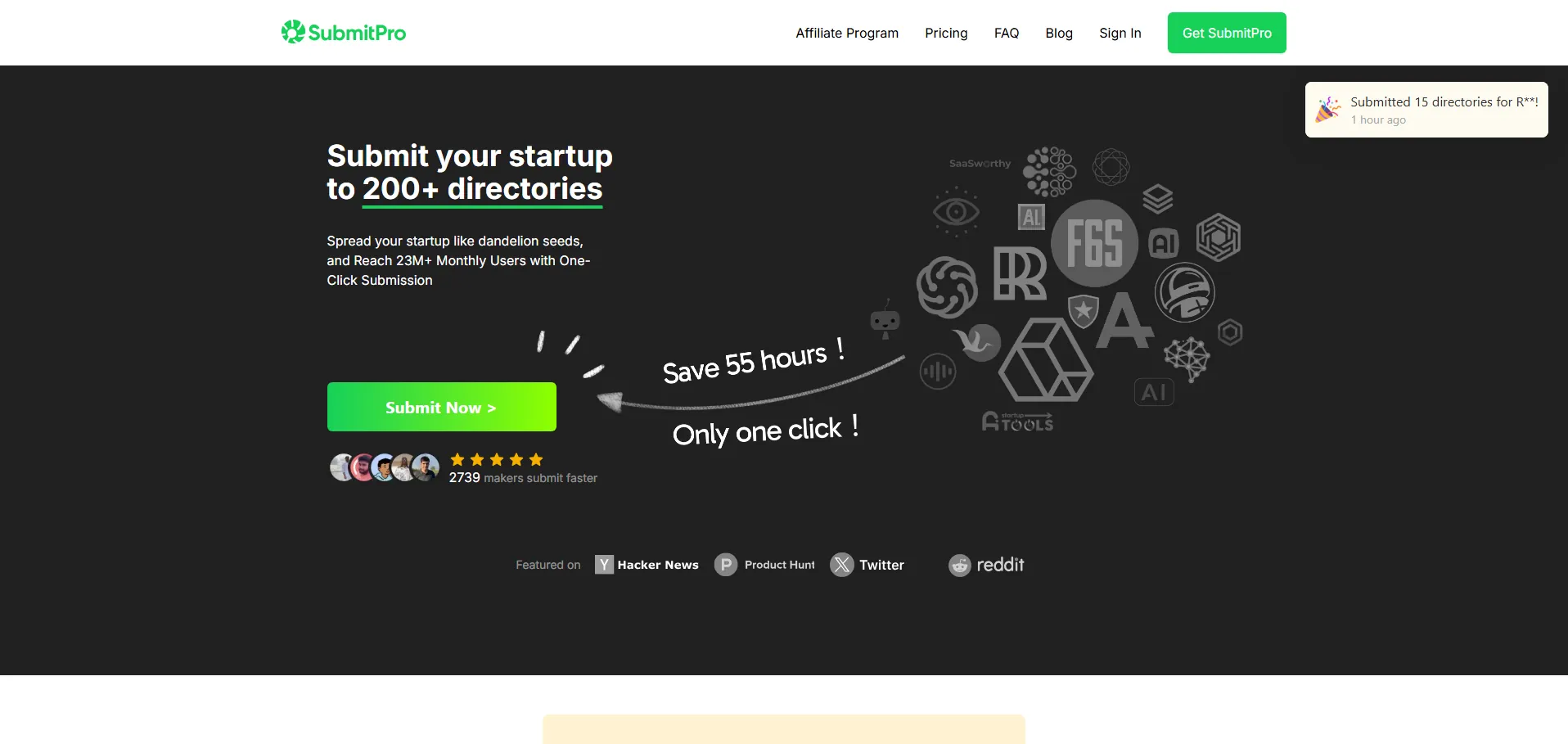 SubmitPro es una plataforma que automatiza y acelera el registro de productos y servicios de startups en más de 100 directorios con un solo clic. Diseñada para emprendedores que buscan mejorar su visibilidad online, permite una configuración en menos de 10 minutos y genera tráfico inmediato. Ofrece acceso a listados gratuitos y premium, impulsa estrategias de linkbuilding para optimizar el SEO y facilita el seguimiento de cada envío mediante informes detallados. Ideal para minimizar tareas manuales y centrar recursos en el crecimiento del negocio.