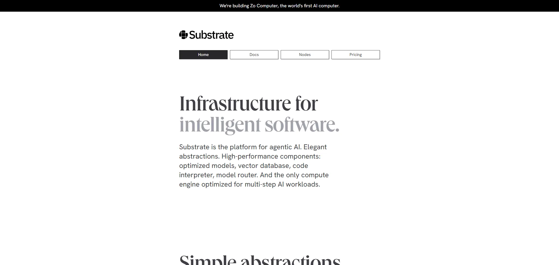 Substrate es una plataforma diseñada para construir sistemas de IA compuestos, que ofrece abstracciones sencillas para crear flujos de trabajo complejos. Con Substrate puedes conectar nodos modulares, optimizar cargas de trabajo de IA y gestionar datos eficientemente, gracias a su motor de cómputo multietapa, base de datos vectorial y ejecutor de código dinámico.