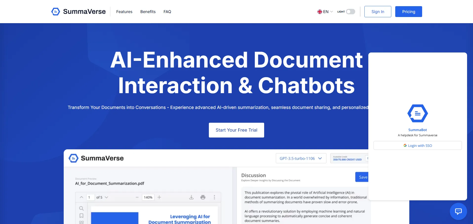 SummaVerse es una herramienta de inteligencia artificial especializada en análisis de documentos y creación de chatbots conversacionales. Permite transformar archivos extensos en diálogos interactivos mediante resúmenes avanzados impulsados por IA, intercambio fluido de información y chatbots personalizados. Con una interfaz intuitiva y un potente motor de IA, los usuarios descubren en segundos los datos clave de cualquier documento, ajustan tipos de resumen, idiomas y parámetros según sus necesidades, y colaboran compartiendo y debatiendo hallazgos en tiempo real desde cualquier dispositivo.