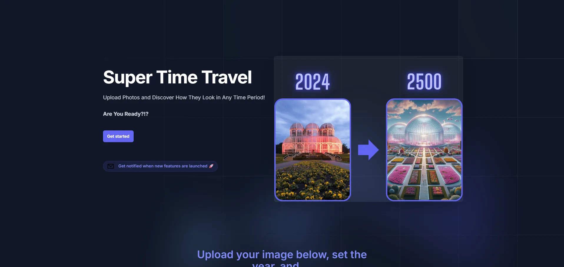 Super Viaje en el Tiempo es una plataforma de edición fotográfica potenciada por inteligencia artificial que permite revivir escenas históricas y futuristas. Con una interfaz sencilla, los usuarios suben sus imágenes y seleccionan el año deseado para visualizar cambios arquitectónicos, de indumentaria y ambiente. Ideal para quienes buscan combinar creatividad, aprendizaje histórico y tecnología, esta herramienta redefine la forma de explorar el tiempo a través de tus propias fotografías.