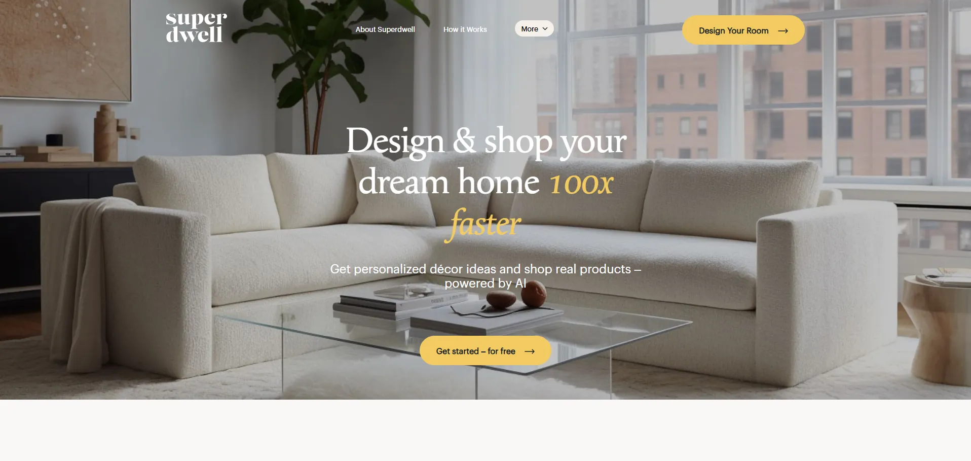 Superdwell AI es una plataforma de diseño de interiores y habitaciones impulsada por inteligencia artificial que acelera el proceso de decoración hasta 100 veces. Ofrece sugerencias instantáneas de expertos, colaboración con diseñadores virtuales y compra integrada de mobiliario, permitiéndote crear espacios personalizados sin complicaciones.