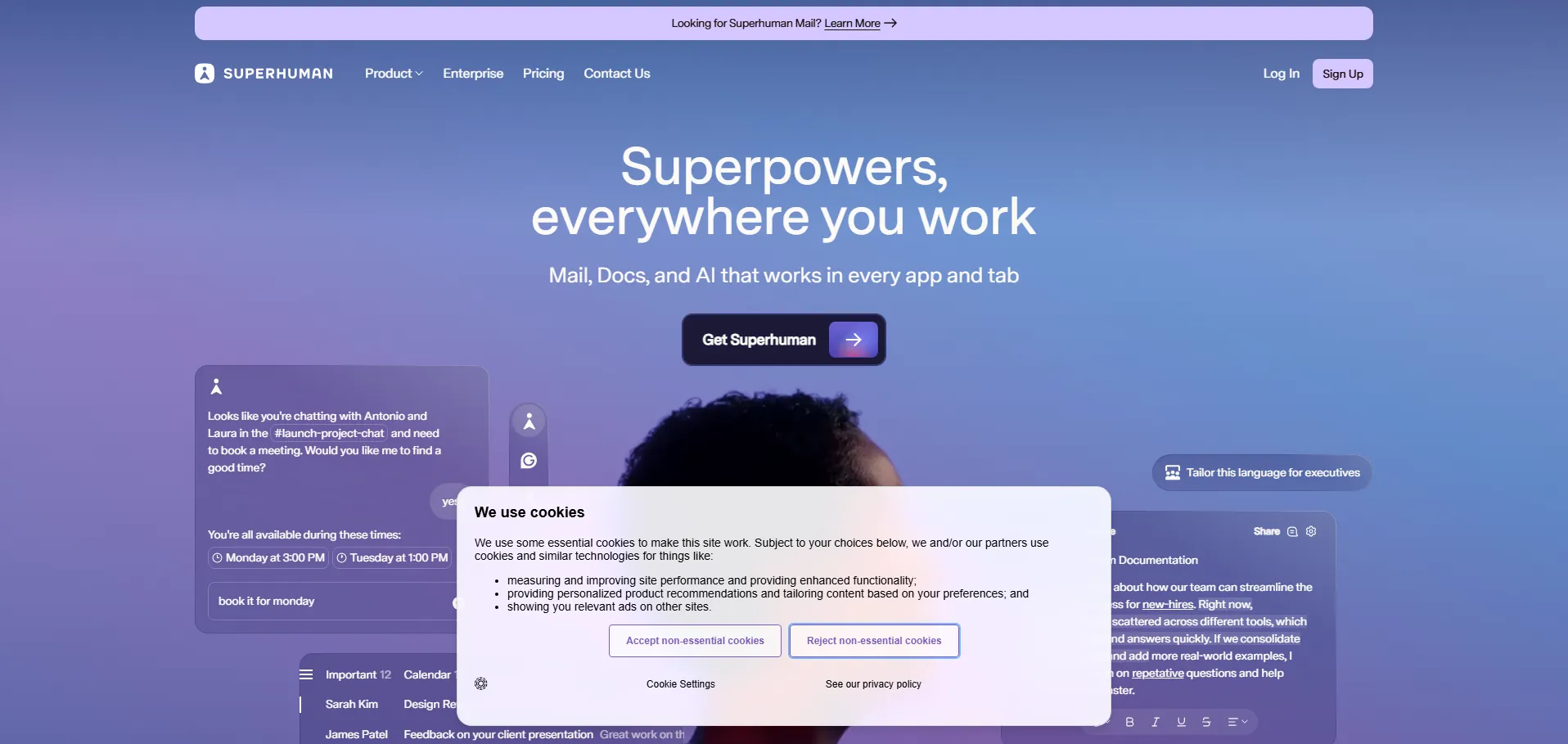Superhuman es un cliente de correo electrónico ultrarrápido y minimalista, diseñado para potenciar la productividad mediante funciones avanzadas basadas en inteligencia artificial. Su interfaz intuitiva integra información de redes sociales, permite deshacer envíos al instante y ofrece recordatorios de seguimiento y estado de lectura en tiempo real. Con Superhuman, los profesionales gestionan su bandeja de entrada al doble de velocidad y ahorran horas cada semana.