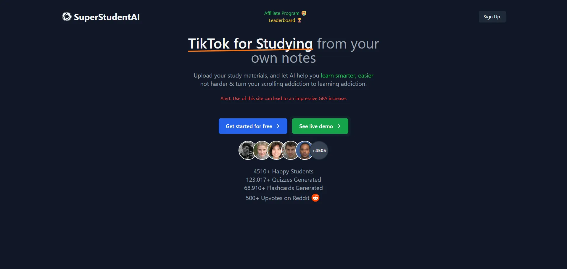 SuperStudentAI es una plataforma educativa impulsada por inteligencia artificial que centraliza todos tus recursos de estudio—archivos PDF, documentos y páginas web—en un único espacio. Su avanzado motor de IA genera resúmenes personalizados, explicaciones detalladas y preguntas de práctica adaptadas a tus necesidades de aprendizaje. Con herramientas para crear cuestionarios interactivos y diagramas visuales, SuperStudentAI facilita la comprensión de temas complejos. Su interfaz, inspirada en las redes sociales, convierte el estudio en una experiencia dinámica y atractiva.