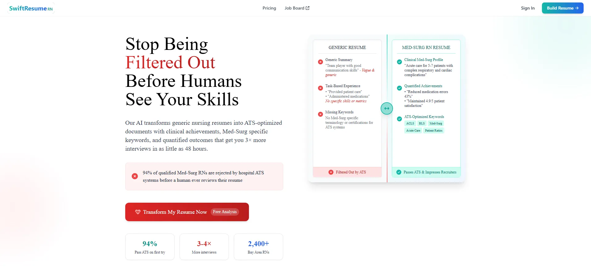 SwiftResume es un creador de currículums potenciado por inteligencia artificial, diseñado para generar CV compatibles con sistemas ATS en cuestión de segundos. Analiza descripciones de puestos para extraer palabras clave, habilidades y experiencias clave que buscan los reclutadores, garantizando un formato estructurado y optimizado. Permite pegar ofertas de trabajo o subir currículums existentes para recibir sugerencias automáticas basadas en feedback de profesionales de contratación. Con SwiftResume, los usuarios reducen el tiempo de edición manual y mejoran la visibilidad de sus perfiles en portales de empleo.