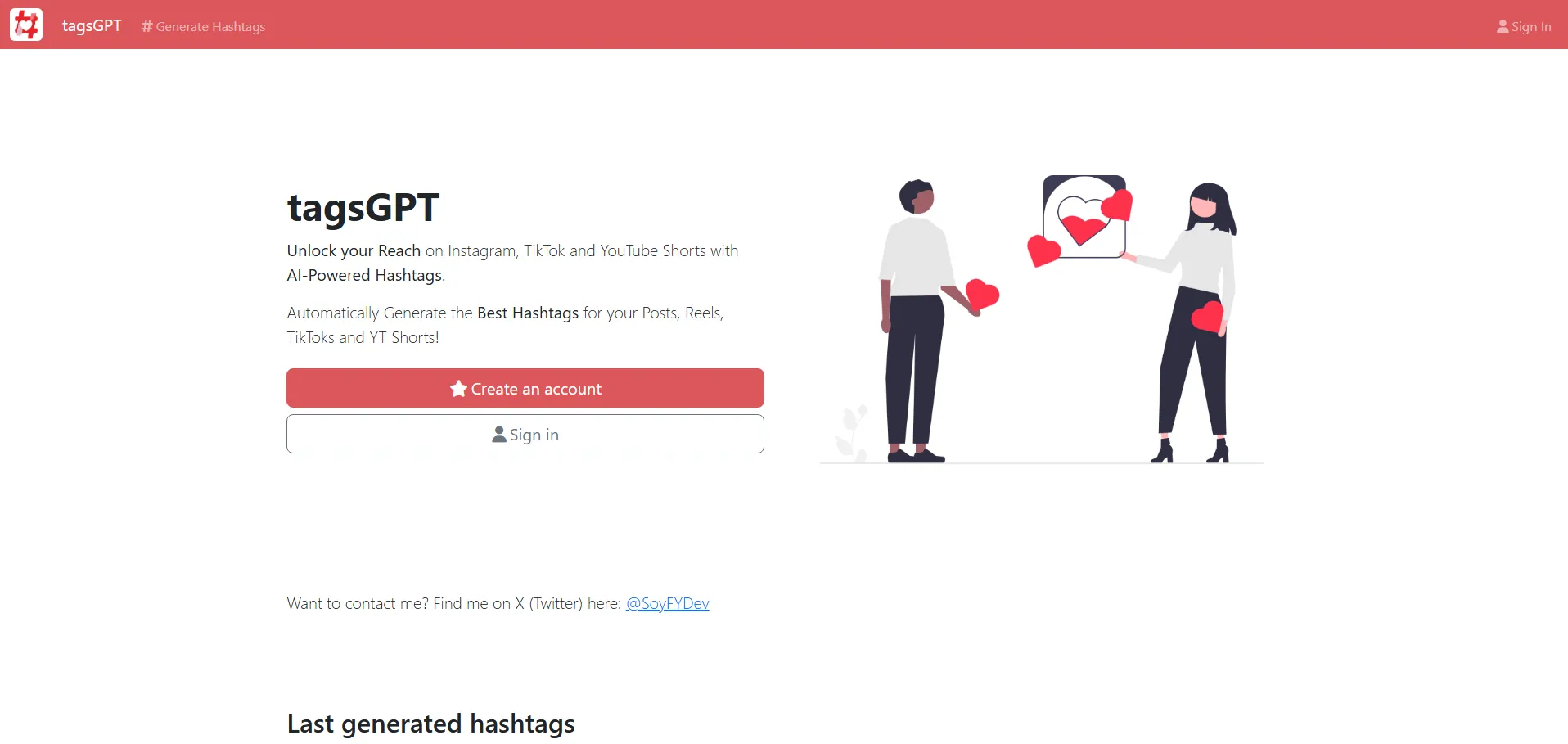 TagsGPT es una herramienta de inteligencia artificial diseñada para generar hashtags optimizados para Instagram, TikTok y YouTube Shorts. Su motor de IA analiza el contenido de tus publicaciones —Reels, TikToks y cortos de YouTube— y sugiere etiquetas relevantes que potencian el alcance y la visibilidad en redes sociales. Con TagsGPT, los creadores de contenido y marcas pueden automatizar la selección de hashtags, mejorar el engagement y mantenerse al día con las tendencias sin dedicar horas a la investigación manual.