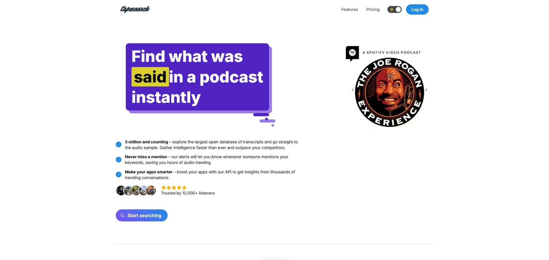 Tapesearch es una herramienta de búsqueda impulsada por inteligencia artificial diseñada para generar y consultar transcripciones de podcasts de forma rápida y precisa. Con más de 363.359 transcripciones generadas y acceso a 2.298 podcasts, permite ordenar resultados por relevancia o título, filtrar por fecha y duración, y excluir palabras específicas para encontrar exactamente lo que necesitas.