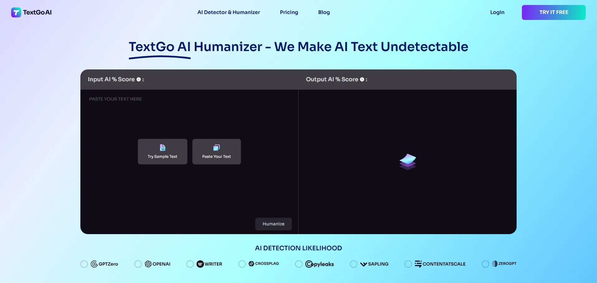 TextGo AI es una herramienta de IA diseñada para transformar contenido generado por IA en textos con apariencia humana. Garantiza que el contenido sea indetectable para las herramientas de detección de IA, libre de plagio y optimizado para el rendimiento SEO. Su interfaz intuitiva permite a estudiantes, creadores de contenido, agencias de marketing y startups crear contenido único y de alta calidad adaptado a sus necesidades. Con compatibilidad en más de 80 idiomas, TextGo AI es una opción versátil para usuarios globales.