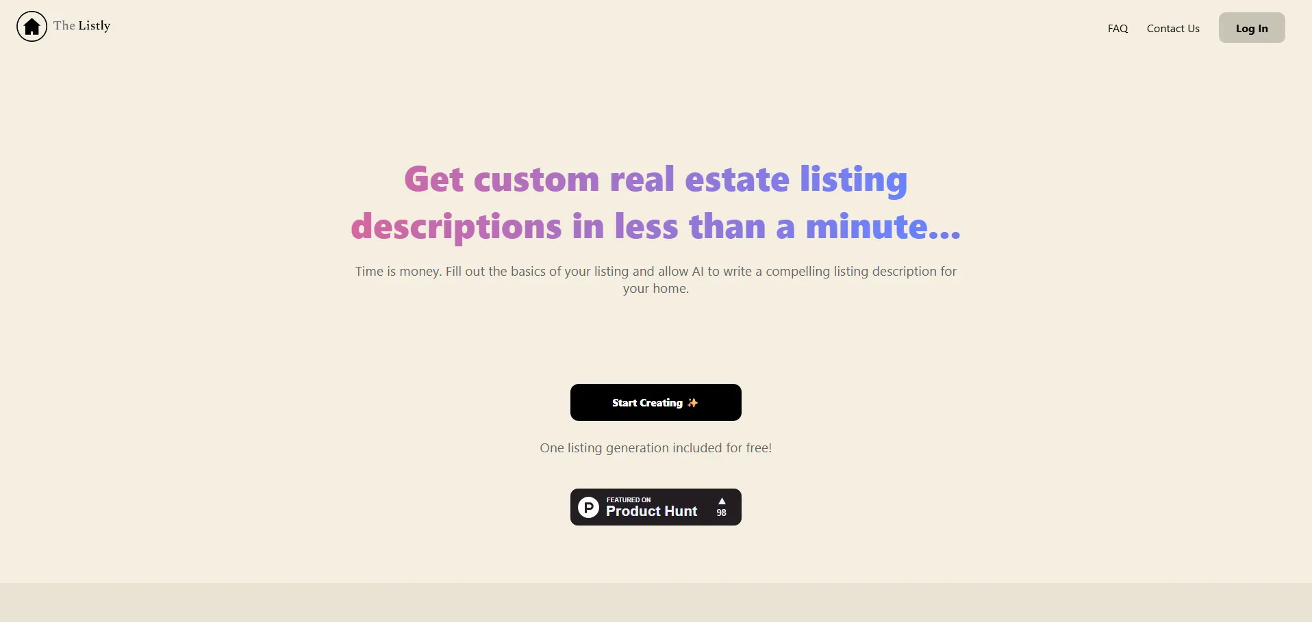 Listly es una herramienta de inteligencia artificial creada para el sector inmobiliario, que automatiza la generación de descripciones de propiedades profesionales. Permite introducir datos clave de la vivienda, subir fotos y obtener textos atractivos en segundos, optimizados con palabras clave SEO y libres de errores gramaticales o inexactitudes factuales. Con Listly, los profesionales inmobiliarios reducen el tiempo de redacción, minimizan costos en redacción freelance y mejoran la visibilidad online de sus anuncios.