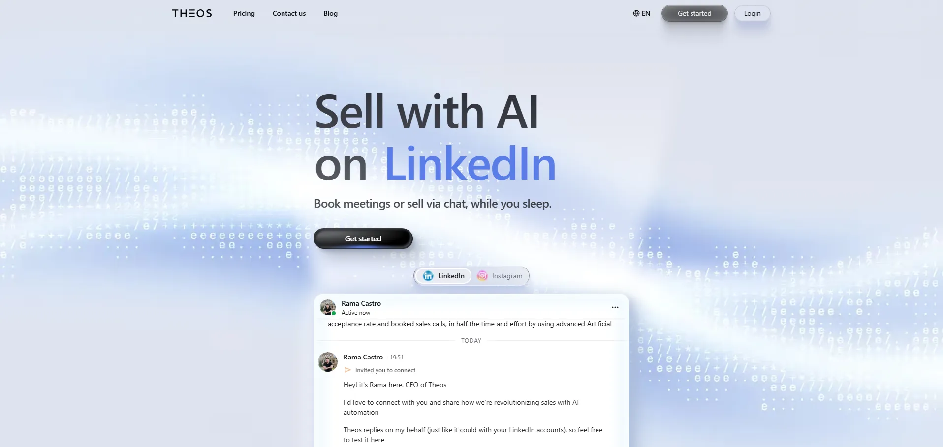 Theos Sales Copilot es una solución de automatización de mensajería potenciada por inteligencia artificial que mejora la comunicación comercial en LinkedIn e Instagram. Permite enviar cientos de invitaciones y seguimientos hiperpersonalizados a diario, incrementando las tasas de respuesta y reduciendo el riesgo de bloqueo de cuentas. Gracias a su envío masivo y generación automática de mensajes, los equipos de ventas pueden centrarse en interacciones de alto valor y cerrar más oportunidades. Su IA analiza perfiles para crear comunicaciones relevantes y únicas a gran escala.