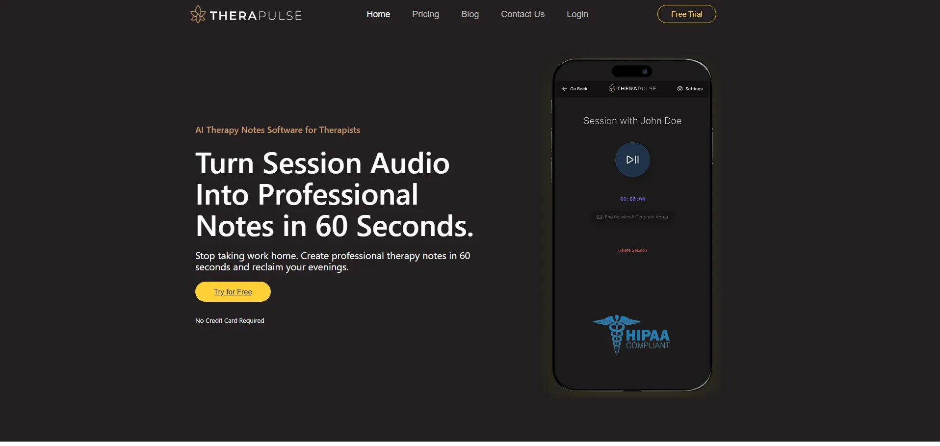 TheraPulse es un sistema de documentación asistida por inteligencia artificial, diseñado para profesionales de la salud mental. Facilita la grabación y el dictado en vivo de sesiones, permite subir archivos de audio para transcripción automática y genera notas de progreso precisas en formatos DAP, SOAP y BIRP. Con detección avanzada de múltiples voces, cifrado AES de 256 bits y cumplimiento total de la HIPAA, optimiza el flujo de trabajo al integrarse con los sistemas de historiales clínicos electrónicos existentes, reduciendo drásticamente el tiempo dedicado al papeleo y mejorando la calidad de la atención al paciente.
