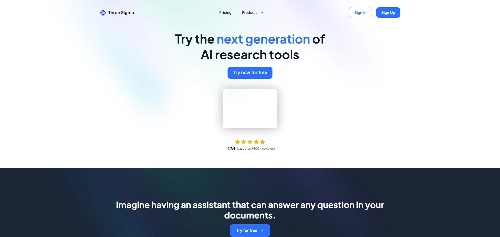 Three Sigma es una herramienta de investigación de inteligencia artificial de última generación, diseñada para acelerar la extracción de información de documentos y reducir hasta un 90 % el tiempo de lectura manual. Su tecnología de búsqueda avanzada y el Asistente Imagine permiten localizar datos y responder preguntas directamente desde los documentos. Además, cuenta con un plugin para ChatGPT que integra sus funciones dentro de la plataforma, evitando iniciar nuevas conversaciones. Three Sigma evoluciona constantemente e incorporará próximamente tablas de referencia, gráficos y capacidades GPT-4.