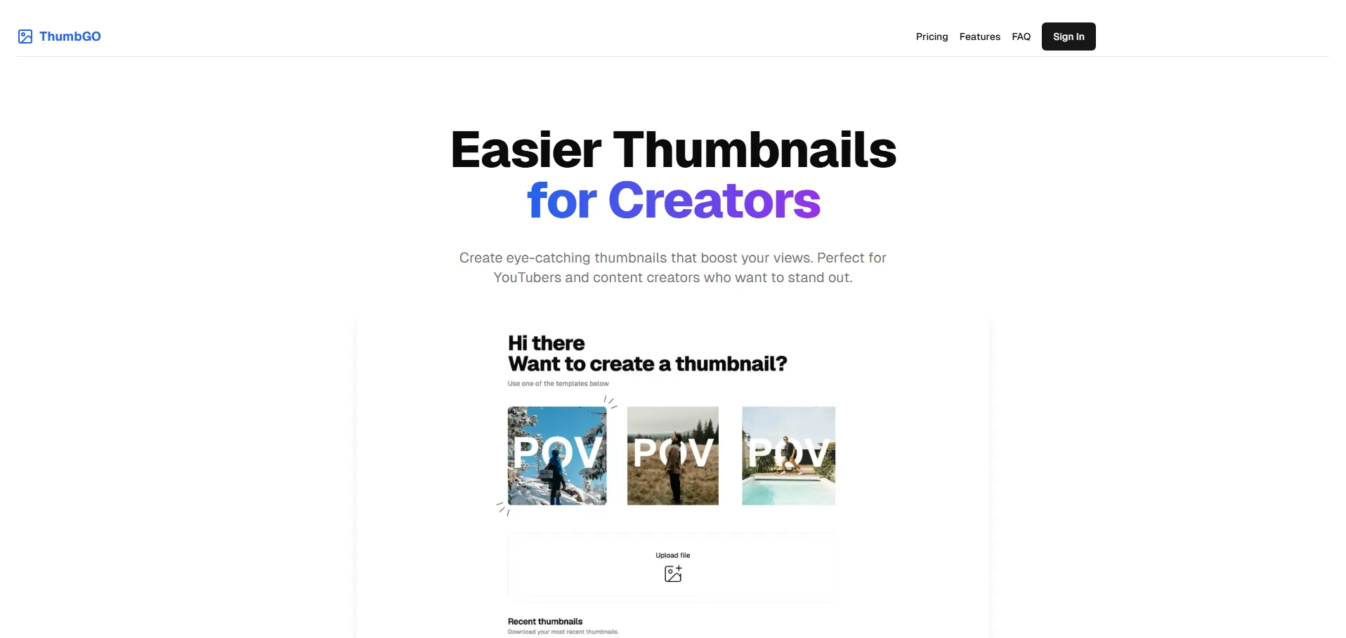 ThumbGO es un generador de miniaturas impulsado por inteligencia artificial, creado para ayudar a los creadores de contenido a mejorar su presencia visual en plataformas como YouTube. Con esta herramienta, es posible diseñar miniaturas profesionales en cuestión de segundos, garantizando consistencia de marca y un estilo atractivo que captura la atención de los espectadores.