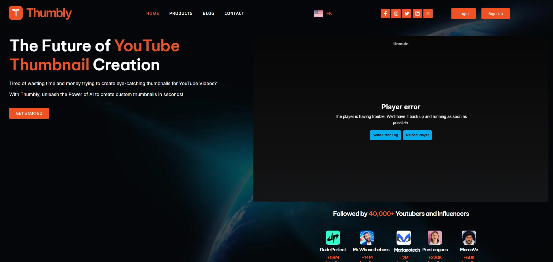 Thumbly.io es una plataforma impulsada por inteligencia artificial que genera miniaturas optimizadas para YouTube a partir de análisis de datos reales de la plataforma. Permite crear imágenes atractivas sin conocimientos de diseño, con el fin de captar la atención de tu audiencia y aumentar las visualizaciones de tus vídeos.