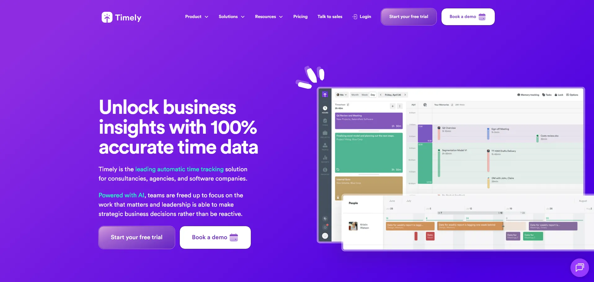 Timely es un software de seguimiento del tiempo basado en inteligencia artificial, diseñado para ayudar a profesionales y empresas a gestionar sus actividades de forma precisa y eficiente. Con funcionalidades que incluyen el seguimiento de proyectos, la supervisión de equipos, la gestión de planes y el control de presupuestos, Timely ofrece análisis en tiempo real del progreso y las horas trabajadas. Además, se integra con aplicaciones populares como Asana, Basecamp y Google Calendar para centralizar toda la información de tu flujo de trabajo.