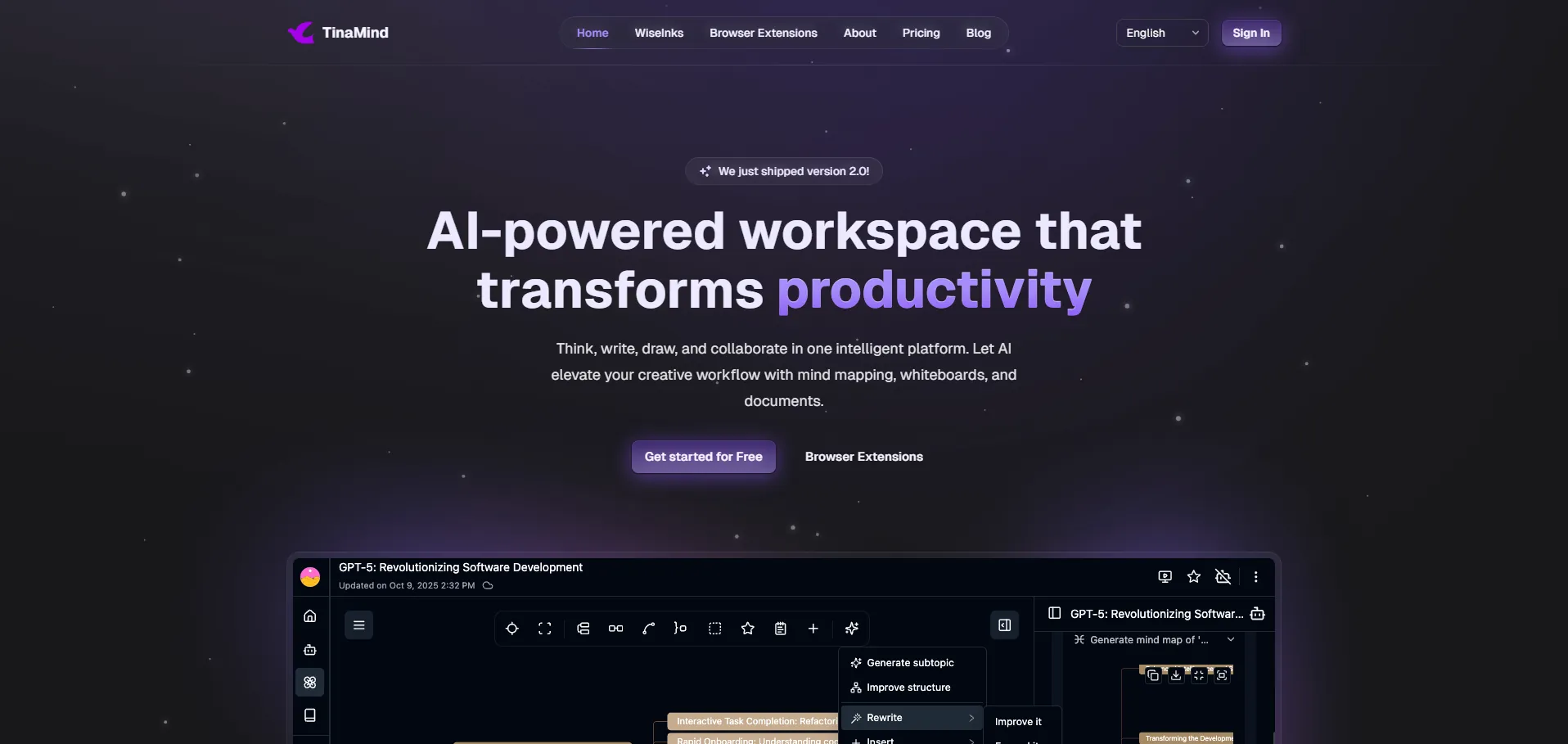TinaMind es una extensión de navegador impulsada por inteligencia artificial que integra la tecnología de ChatGPT para mejorar tu experiencia de navegación. Ofrece chat en tiempo real, traducción instantánea, redacción asistida y resumen de contenido sin salir de la página. Permite crear y gestionar atajos personalizados, desactivar o configurar accesos directos en sitios web y organizarlos según tus hábitos de uso. Su módulo de documentos sintetiza textos extensos, explica conceptos complejos y extrae la información más relevante en segundos. Además, su función de resumen de YouTube genera guiones concisos de vídeos y traduce subtítulos de forma automática.