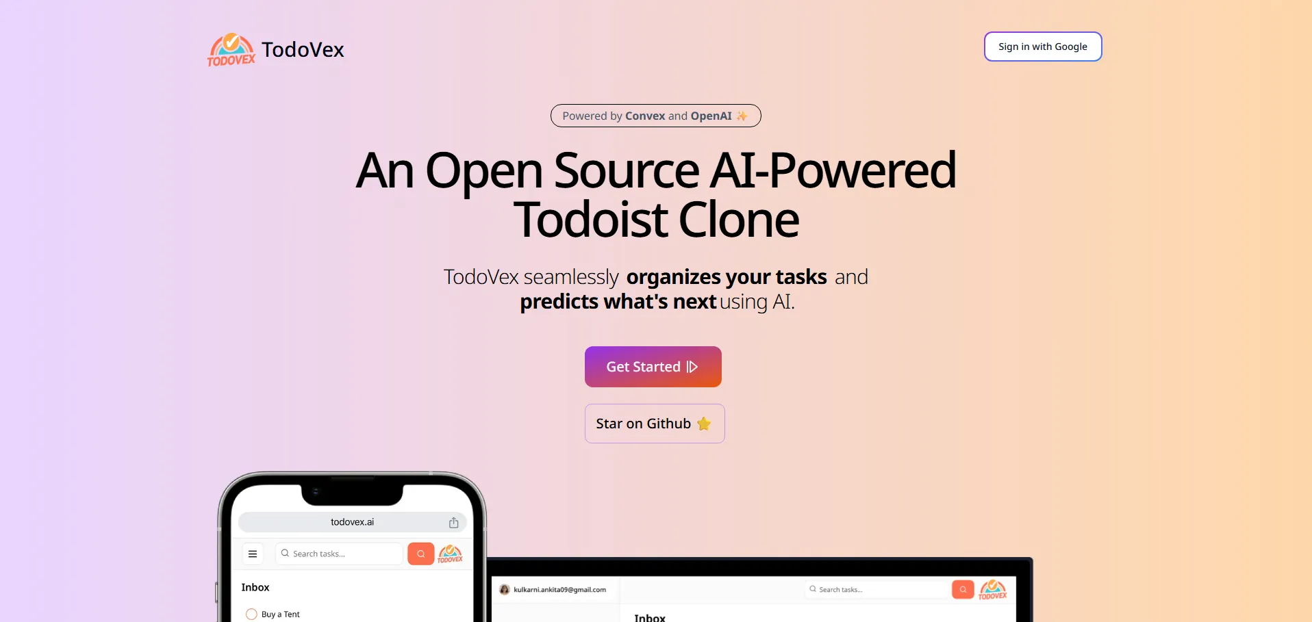 Todovex es una plataforma de gestión de tareas de código abierto impulsada por inteligencia artificial. Con integraciones nativas con Google y Convex, {{Todovex}} organiza, prioriza y categoriza tareas de forma automática, ofreciendo predicciones basadas en hábitos y datos del usuario. Ideal para optimizar la productividad de equipos y profesionales independientes, facilita la planificación, el seguimiento y la colaboración en tiempo real.