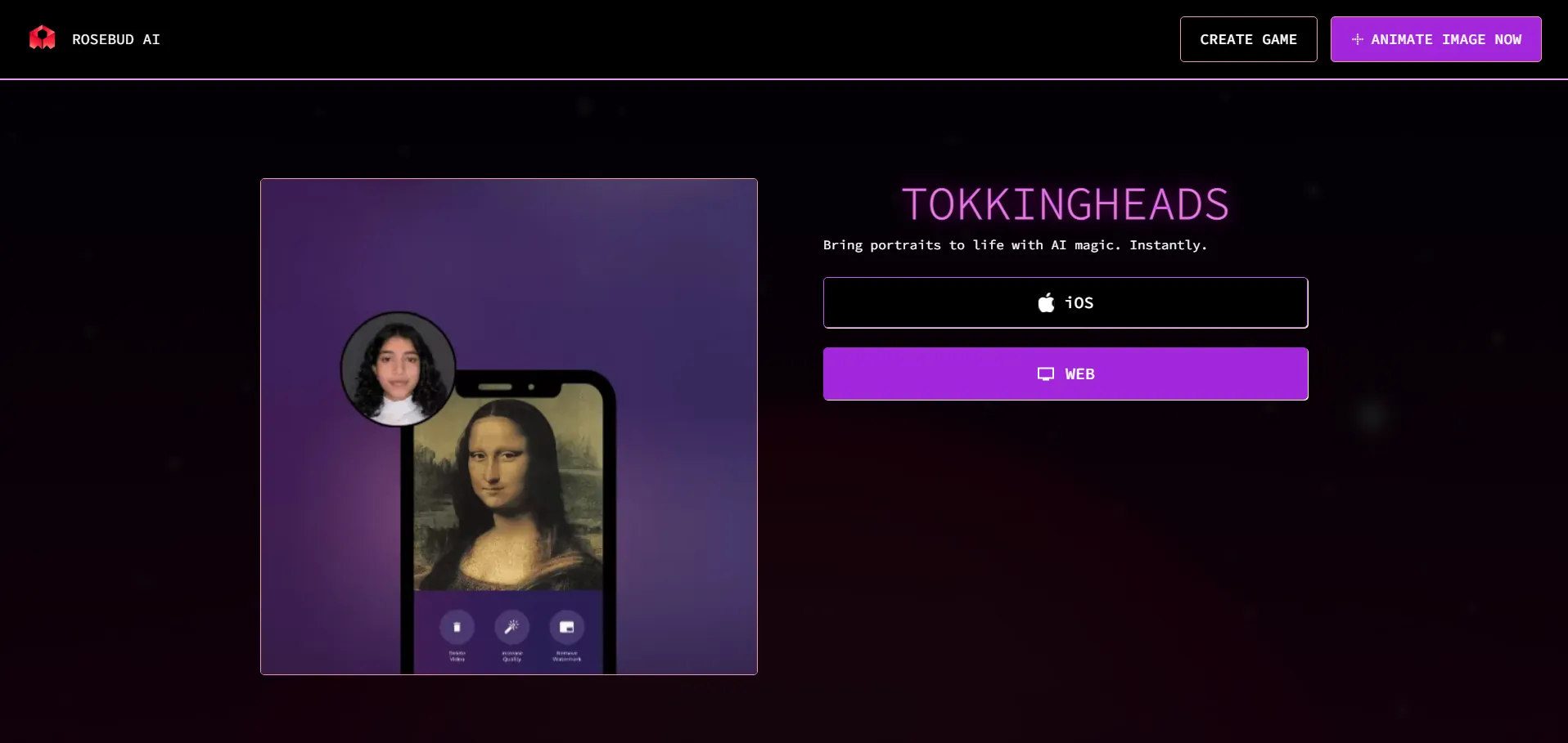 Tokkingheads es una herramienta de IA desarrollada por Rosebud AI que permite animar fotos al instante mediante marionetas, generar avatares y skyboxes, conceptualizar diseños y crear cabezas parlantes. Accesible desde su sitio oficial instant.io, ofrece una interfaz intuitiva para dar vida a imágenes estáticas y potenciar proyectos creativos con tecnología avanzada de generación y animación.