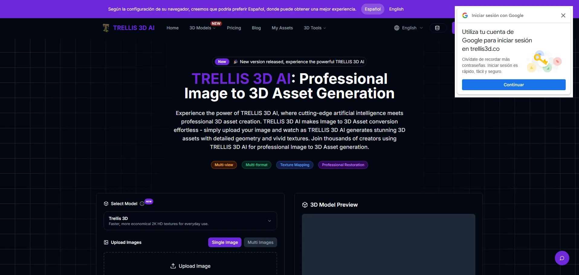Trellis 3D AI es una plataforma online que convierte imágenes 2D en modelos 3D de alta fidelidad. Emplea algoritmos de IA avanzados para generar geometría precisa y texturas detalladas. Compatible con formatos como glb y 3D Gaussian, ofrece previsualización en el navegador sin necesidad de software adicional. Su motor de procesamiento ultrarrápido permite a artistas y desarrolladores integrar recursos 3D al instante en proyectos, videojuegos y aplicaciones de realidad aumentada o virtual.