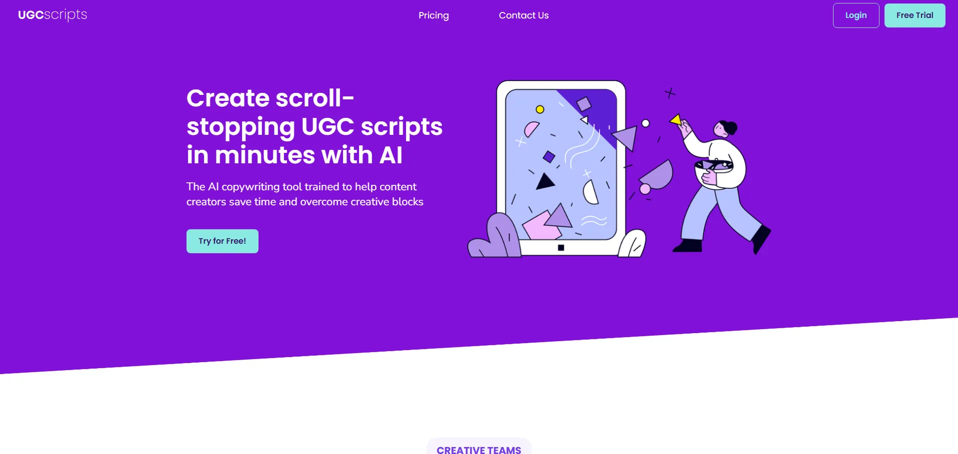 UGC Scripts es una herramienta de redacción asistida por inteligencia artificial diseñada para que creadores y equipos de marketing generen contenido de usuario de forma rápida y efectiva. A partir de datos de marca, propuestas de valor y contexto de producto, crea guiones personalizados que potencian la visibilidad y el engagement, optimizando el flujo creativo y reduciendo drásticamente el tiempo de producción.